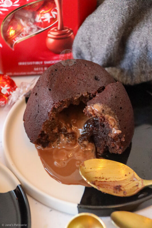 The Lindt truffles are famous beyond words, and there isn’t often a year where I am not given a box as a present by someone in my life – and yes, I do eat them all immediately as you should. However, as they have that iconic luxury taste, come perfectly in the round shape, they are ideal for the job of going into the centre of a chocolate fondant like this.