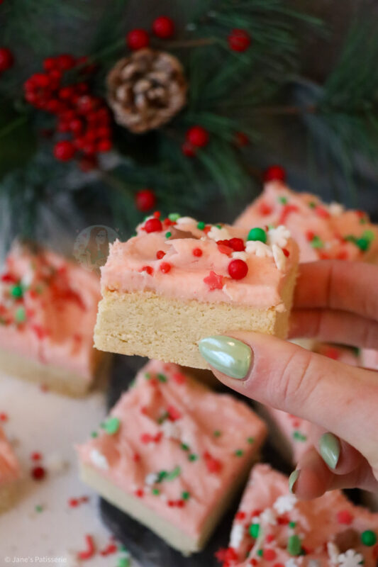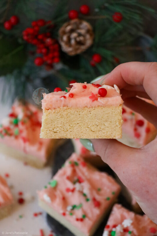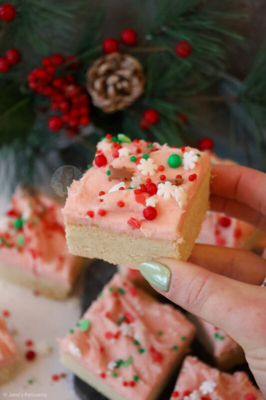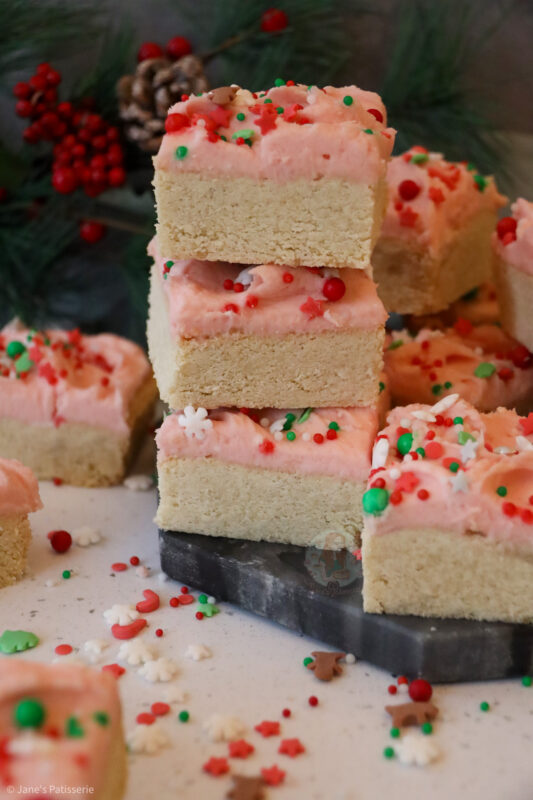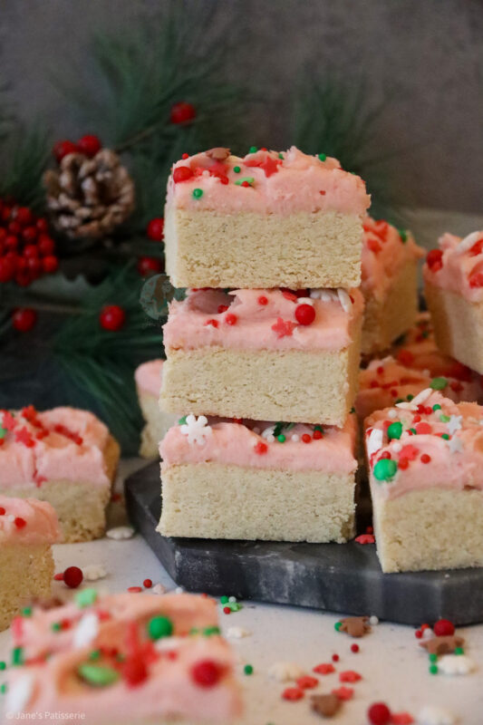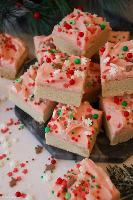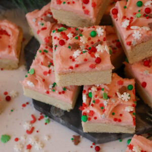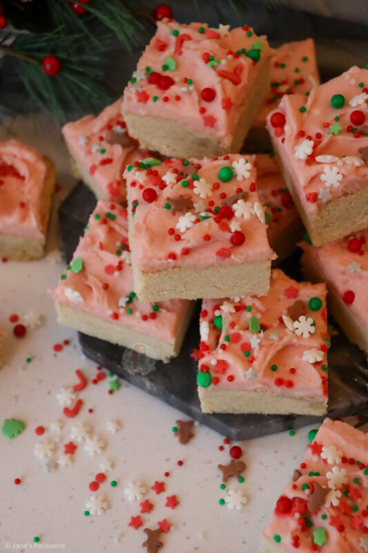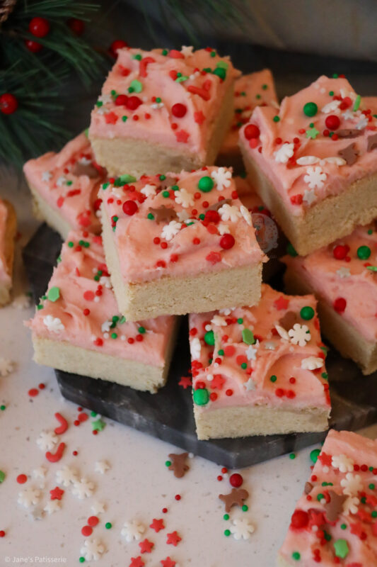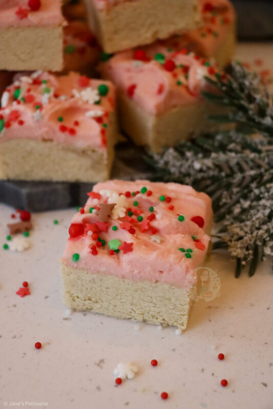 A deliciously sweet traybake of Christmas sugar cookie bars based on the classic cookie, with a sweet frosting and decoration