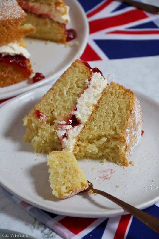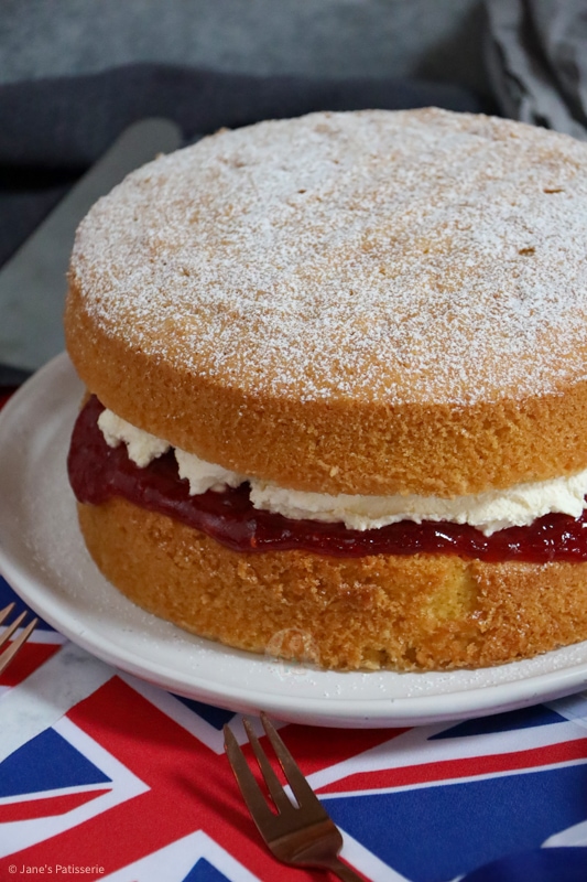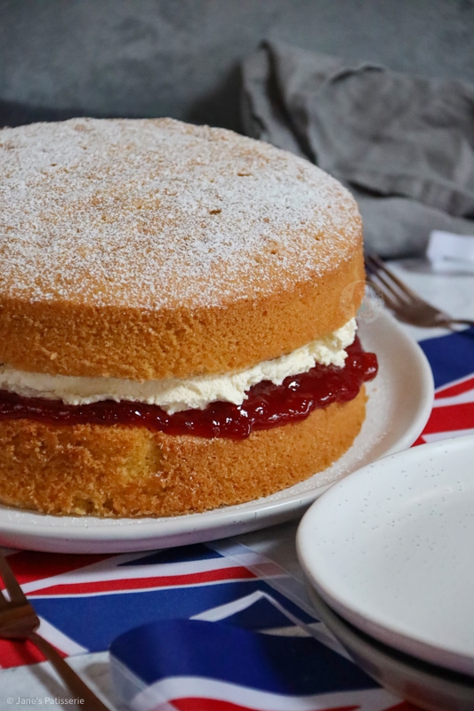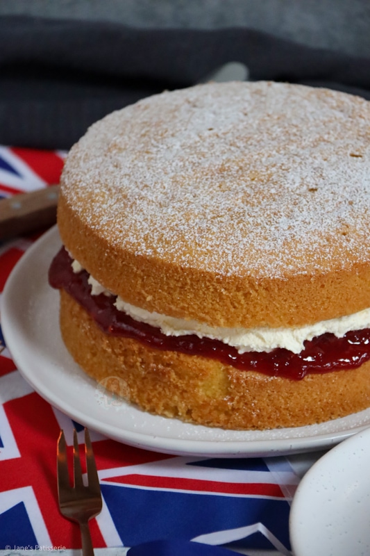 There are endless versions… buttercream and jam, buttercream and fruit, cream and fruit, just jam, and cream and jam like I have chosen. All are delicious, and it’s partly why my Victoria sponge celebration cake is buttercream – as I love that version as well. However, to make this different, and potentially more classic, I went for whipped cream and jam.