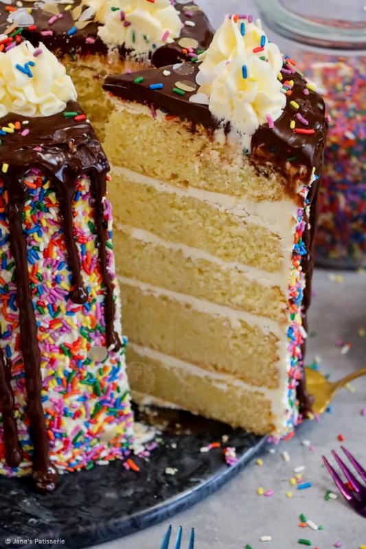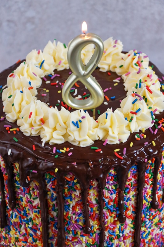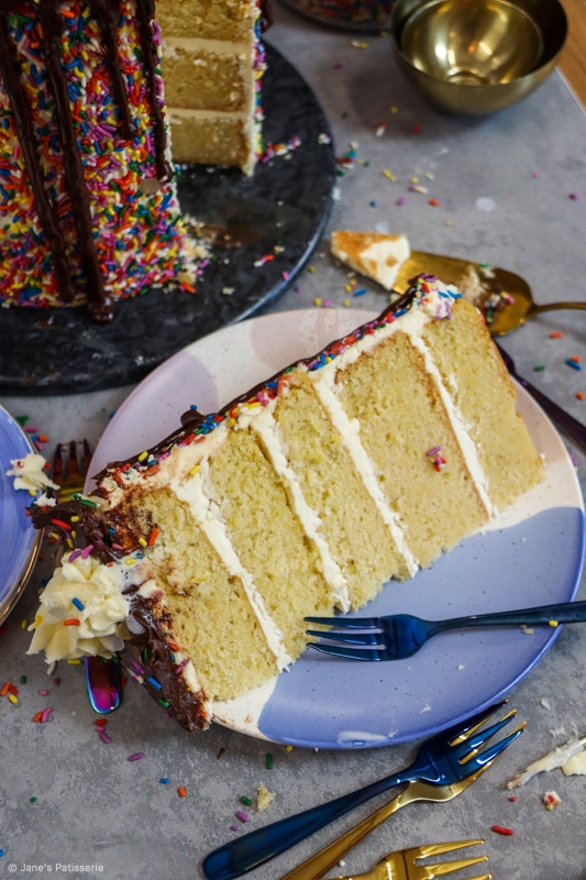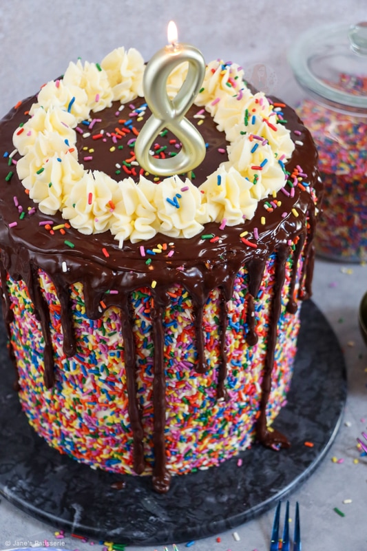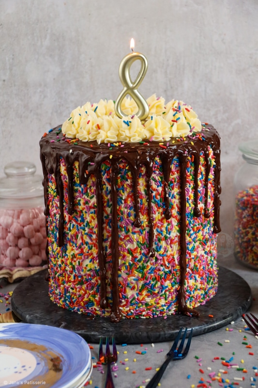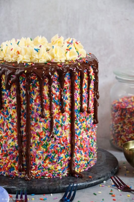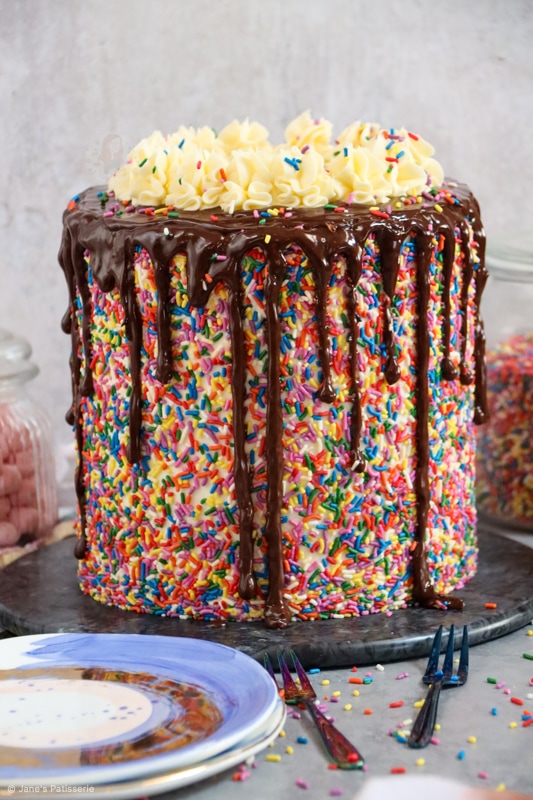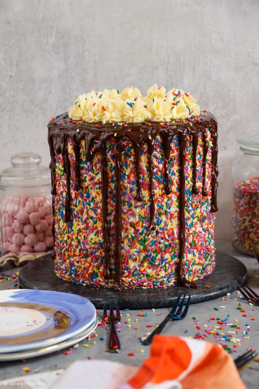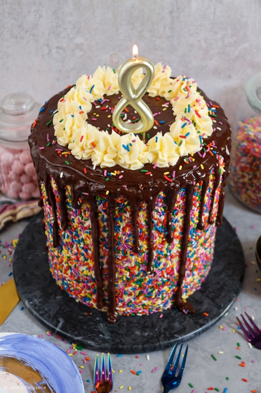 Because of this, I wanted to celebrate with one of the most highly request bakes of all time… a sprinkle cake. But honestly, I cannot thank you all enough. Thank you for making my dream a reality and supporting me every day. Thank you. Jane x