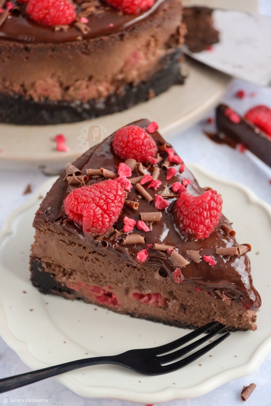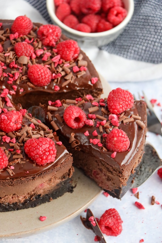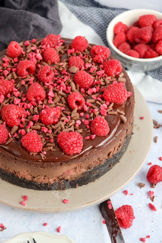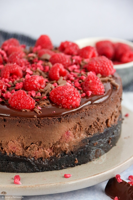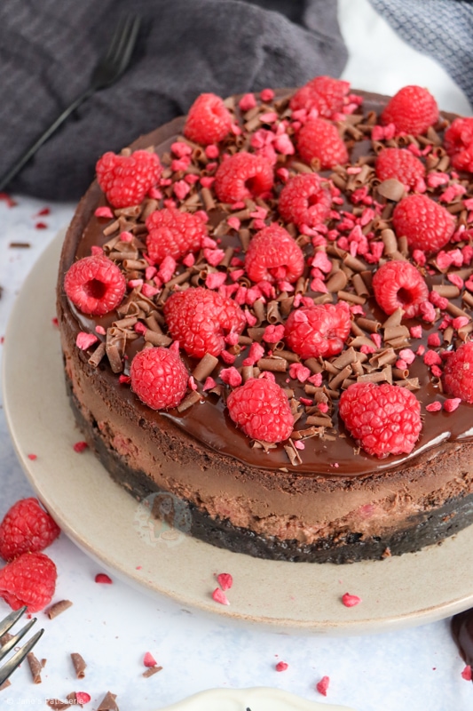 A deliciously rich and chocolatey raspberry chocolate cheesecake with a chocolate biscuit base, chocolate raspberry filling and more!