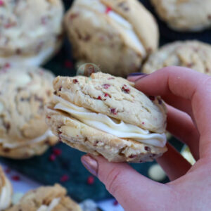 - Pipe/spread the cream cheese frosting onto half of the cookies, and then sandwich with another cookie!