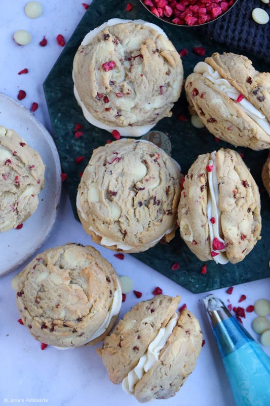 - Bicarb – These cookies aren’t designed to rise too much or be too big as they are meant to be slightly smaller so that you can get away with the sandwiching.