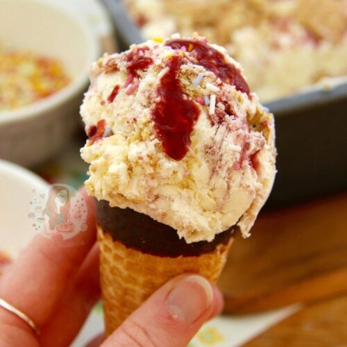No-Churn Strawberry Cheesecake Ice Cream!