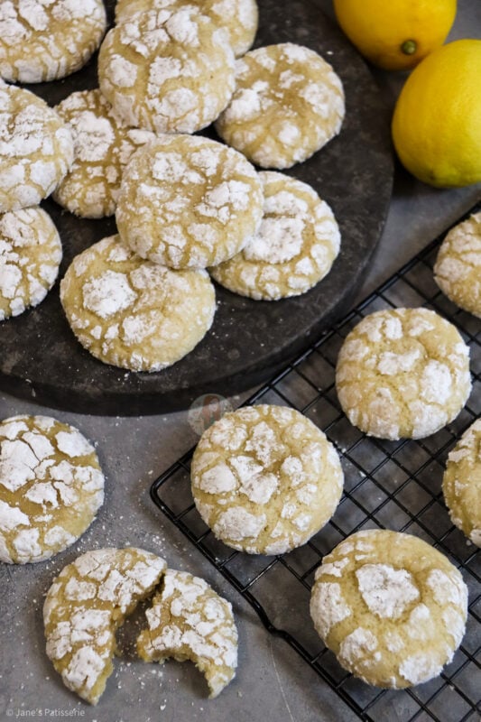 Soft, buttery and zingy lemon crinkle cookies with an icing sugar coating, that are melt in your mouth perfect.