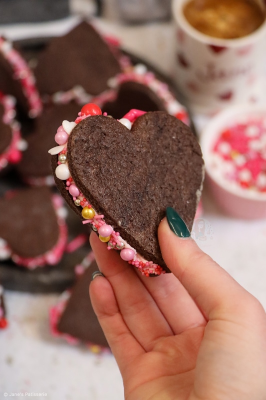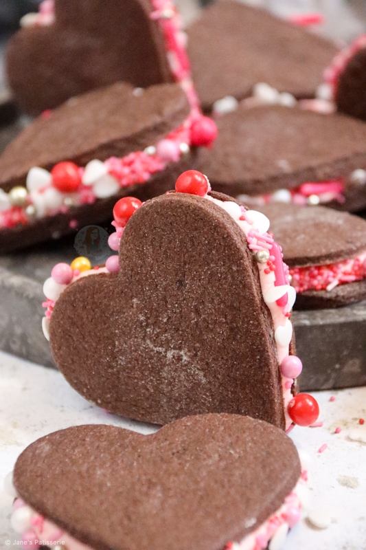 When making the cookies I found it super important to roll out the dough onto a lightly floured surface, otherwise they will definitely stick, and then lightly dunk my heart shaped cutter into a pot of flour as well each time. I also found that you do have to chill these cookies otherwise the dough can puff up slightly.