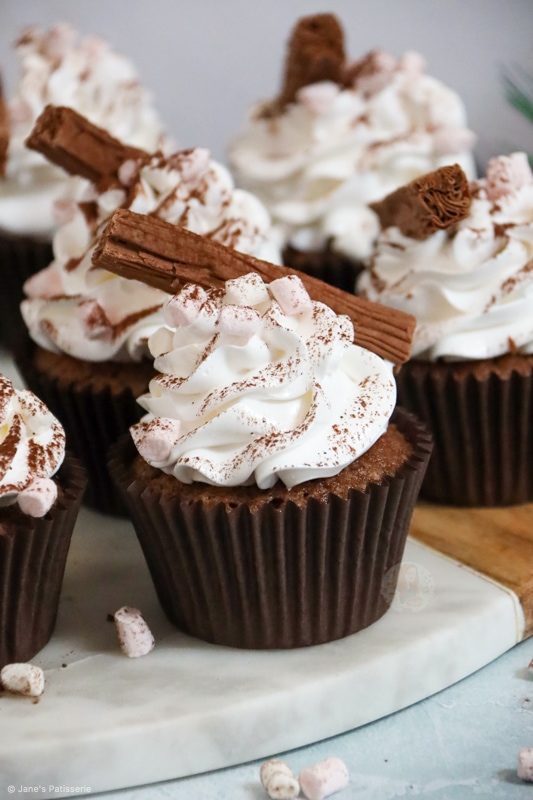 If you have followed me for a while you will know how obsessed I am with hot chocolates. They are cosy, and heavenly, and because its the winter festive season I thought they were the perfect cupcake to celebrate with.