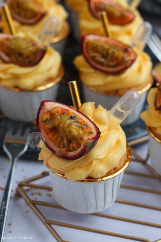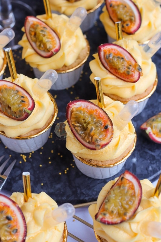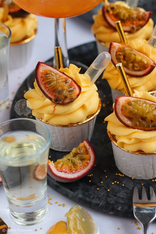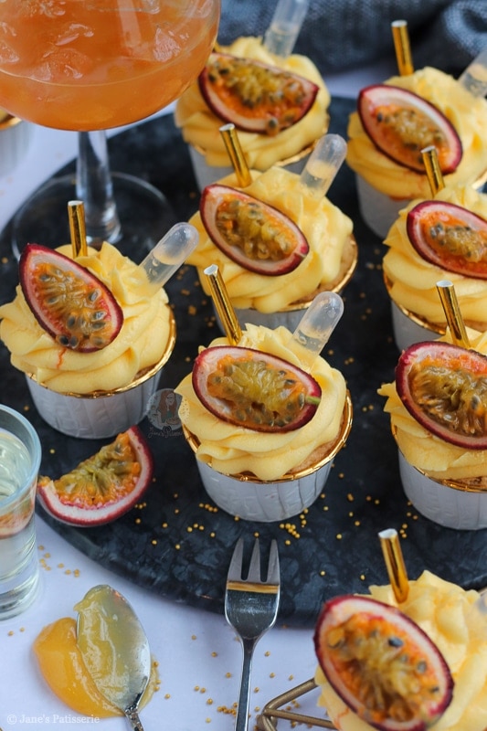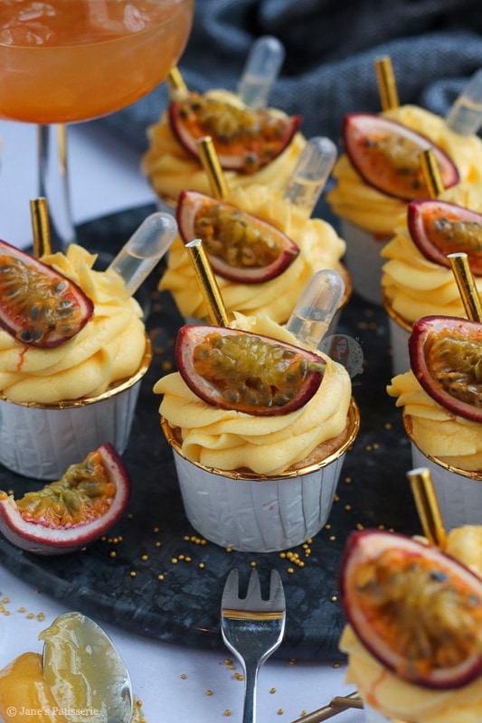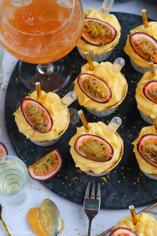This recipe for these passionfruit martini cupcakes is utterly delicious – and finally another bake with a kick! My gin & tonic bakes are always a hit with you guys – but I thought I might as well expand the selection that is perfect for something like NYE. But one thing I will say, these are not kid friendly.
