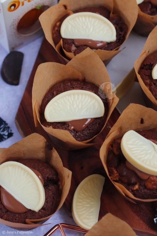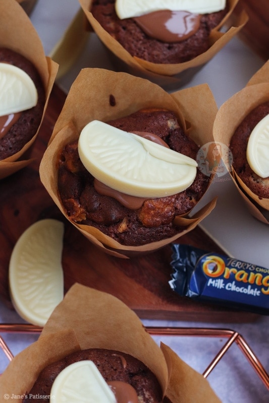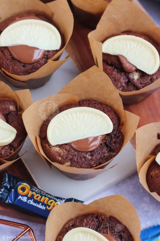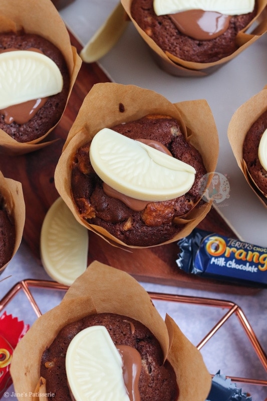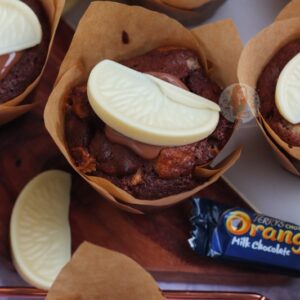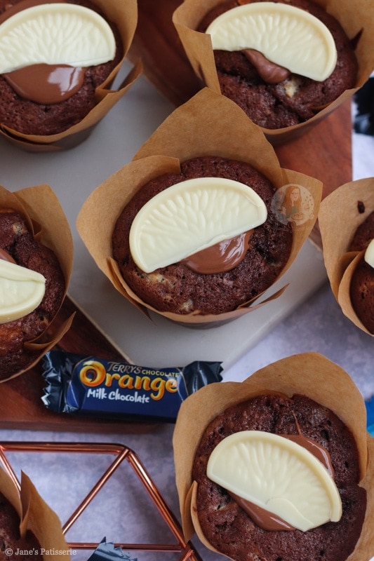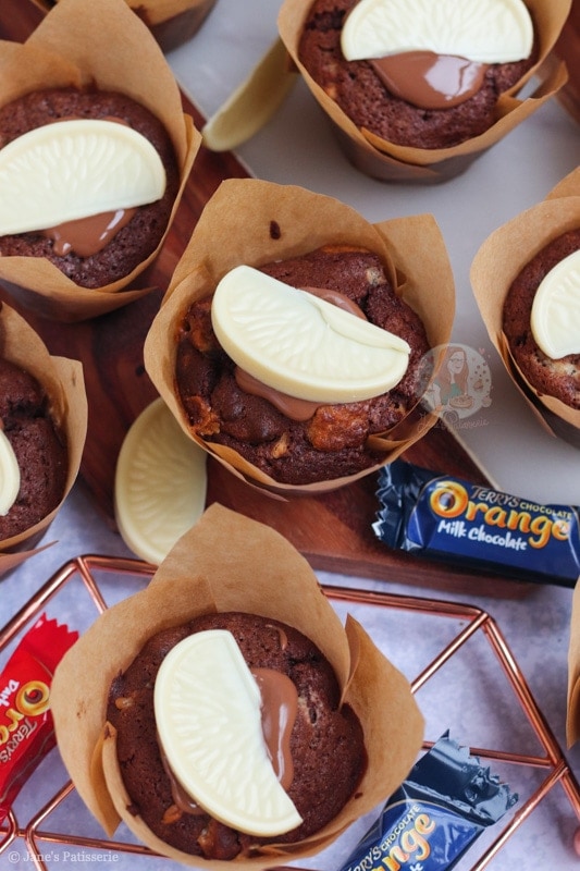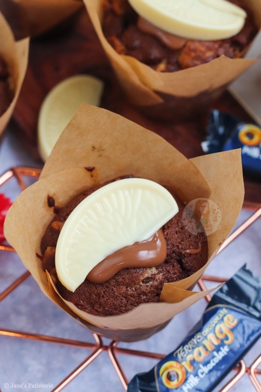 If you want to make these with oil, follow the recipe for the biscoff muffins, but use chocolate orange chunks, add the orange flavouring, and swap out 25g of flour for cocoa powder! But if you aren’t fussed, I do adore the recipe below and think it’s utterly delicious!