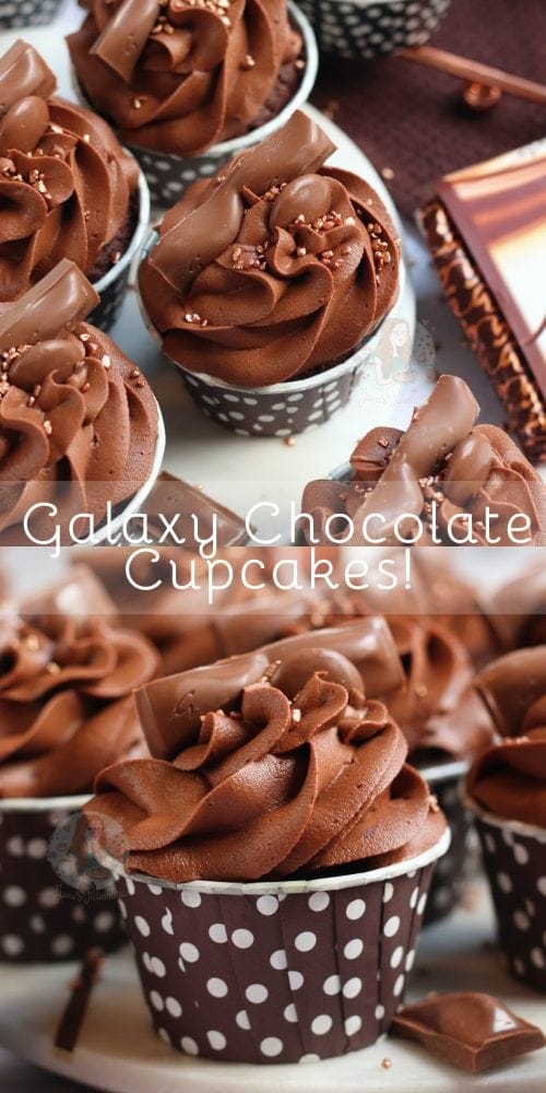 Yummy Galaxy chocolate cupcakes with a chocolate cupcake sponge, Galaxy chocolate buttercream frosting. GALAXY HEAVEN!