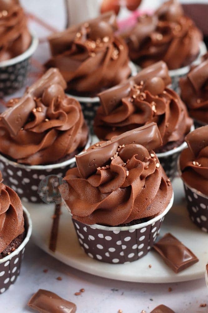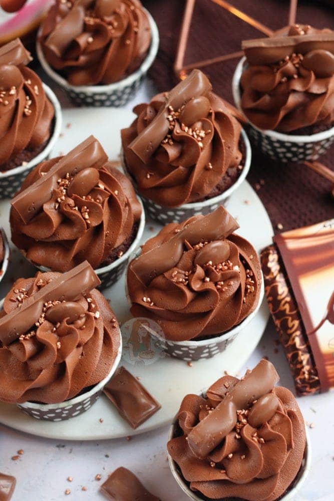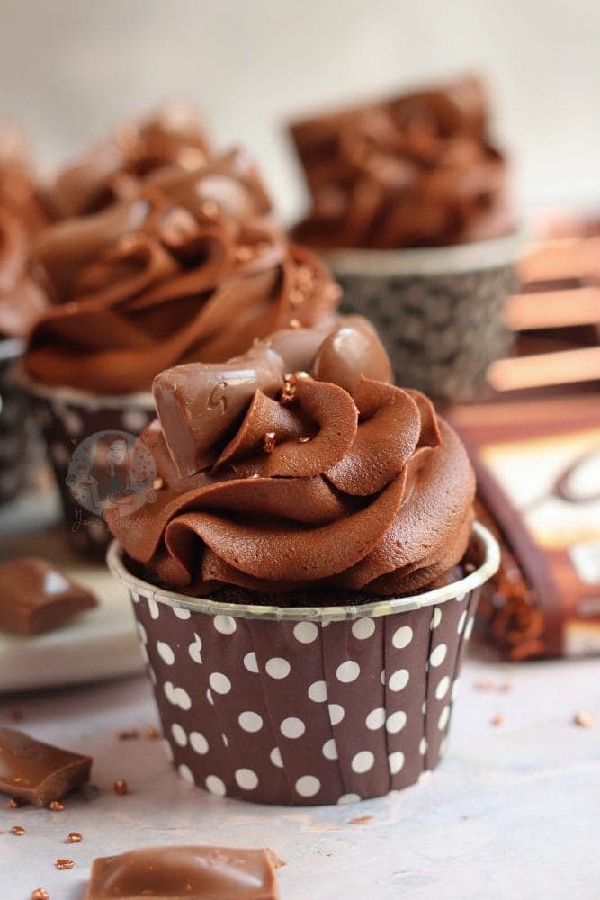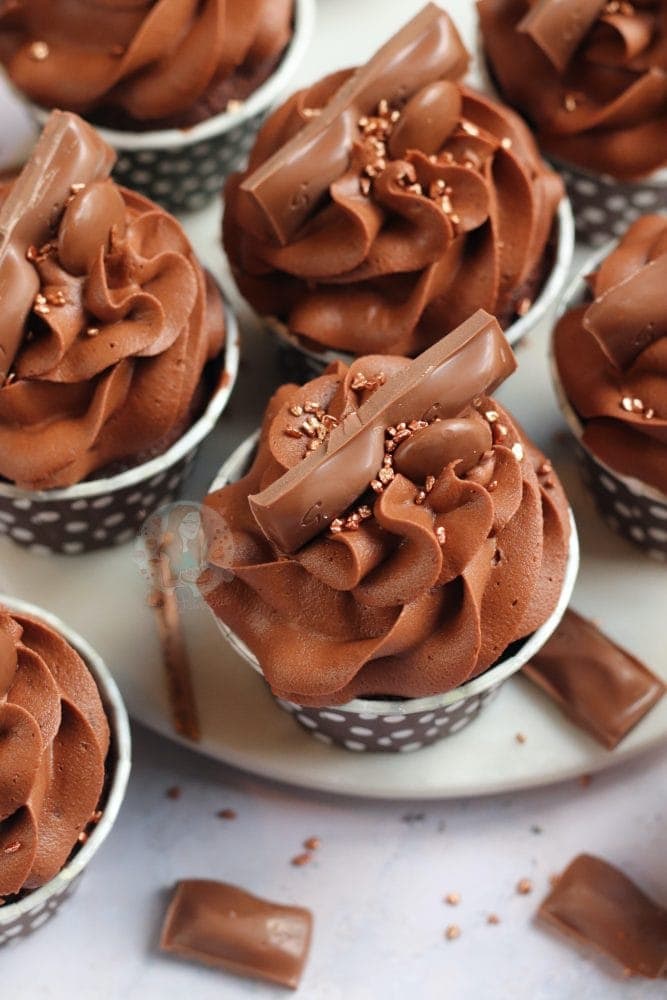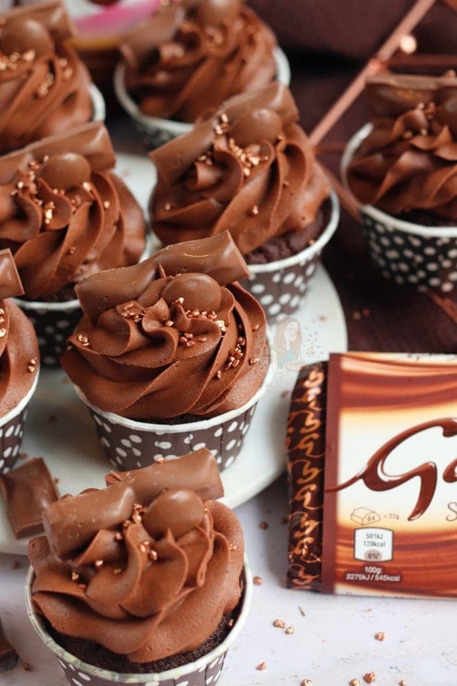Like me, you can put some chopped galaxy throughout the cupcake – but its completely optional. You have enough galaxy in the buttercream and decoration that you definitely don’t need it – but I just love going a little overboard on a flavour theme! As you all well know…