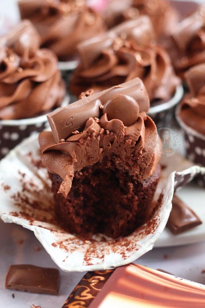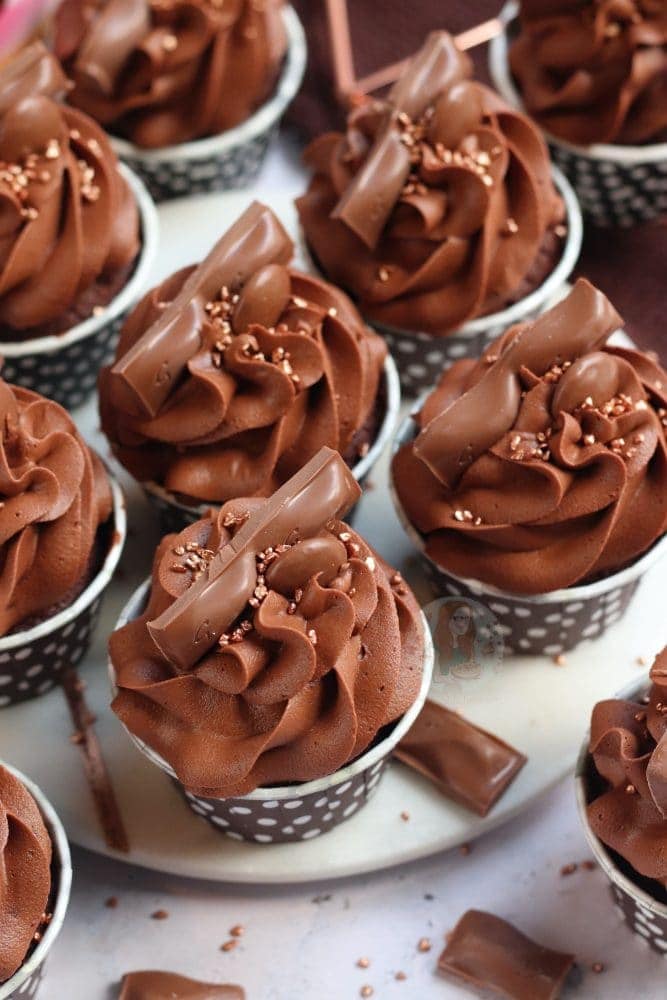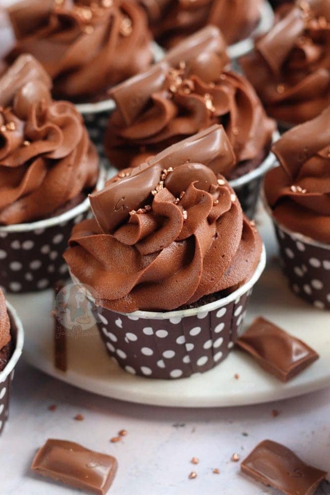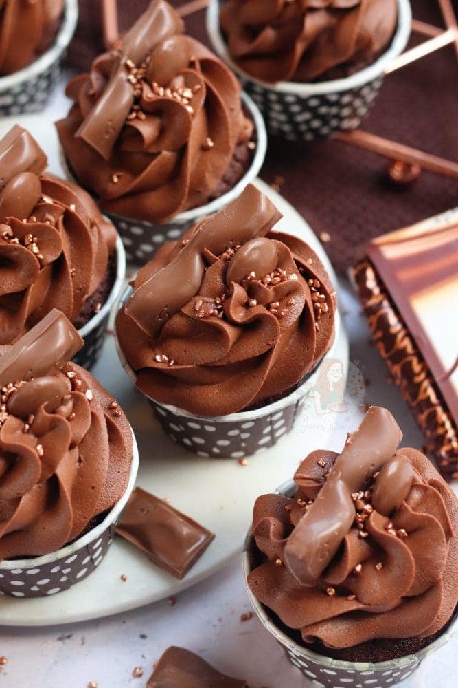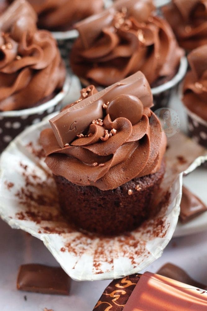 Anyway… the cupcakes. I decided to use my standard brown sugar chocolate cupcake sponge. It’s an easy basic sponge, plus cocoa powder. They’re still light and delicious, and I use them in so many recipes – including my Toblerone cupcakes!