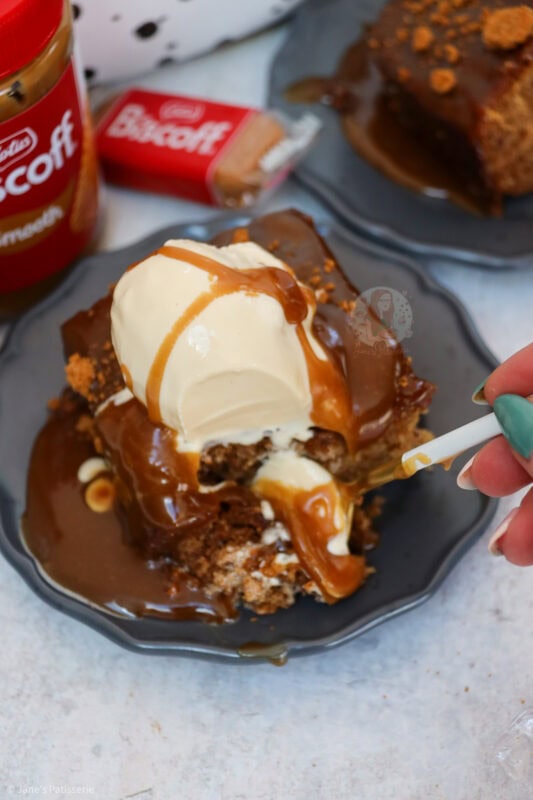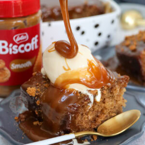 An indulgent and delicious dessert with a twist on a classic with my Biscoff sticky toffee pudding – heavenly!
