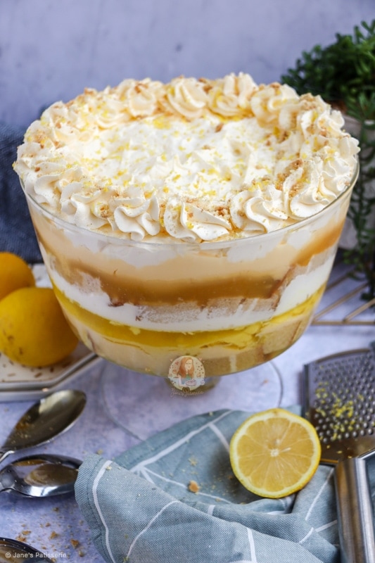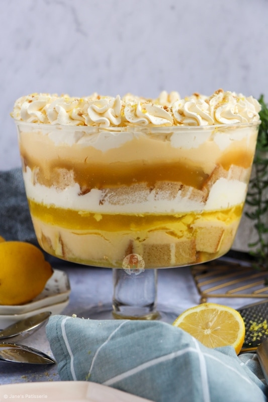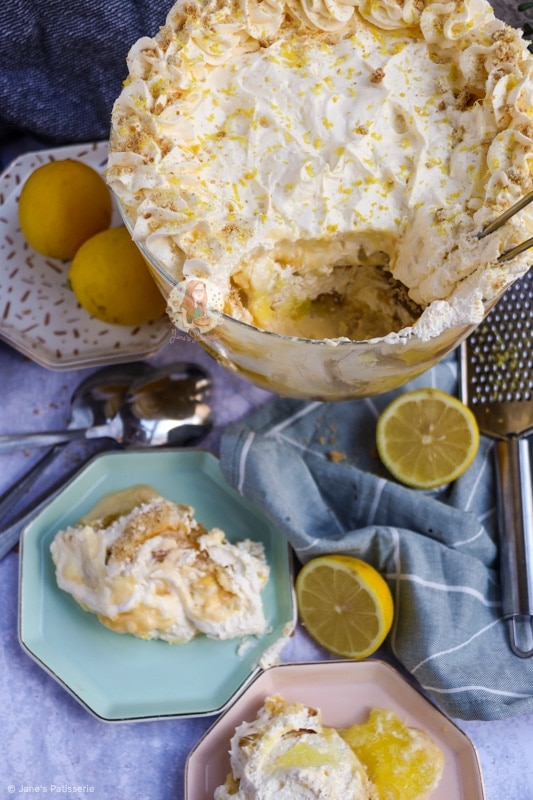 When I bake, I make so many different types of desserts, cakes, puddings, traybakes etc, with all different sorts of flavours and themes. I love this about what I do, and they are always recipes that you guys want to see – and this one is no different; a lemon trifle!