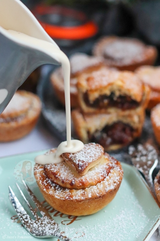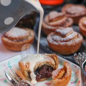 I love serving my mince pies with double cream, as it just looks so good, and it’s the classic serving choice for me – but you can use clotted cream, ice cream or even custard! It’s entirely up to you. Enjoy! x