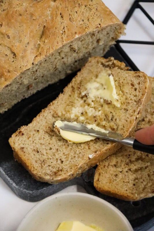 I much prefer to bake it myself than buy it at the shop because of all the additives they put in their bread to make it last longer! There is nothing better than cutting a warm loaf of homemade bread and spreading a nice amount of butter on it – YES PLEASE!