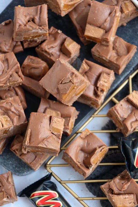 My no-bake mars bar cheesecake and mars bar chocolate mousse have always been popular since they’ve been posted, with a chocolate and caramel delicious base. This is the delicious fudge version!