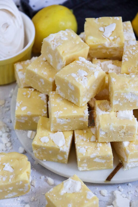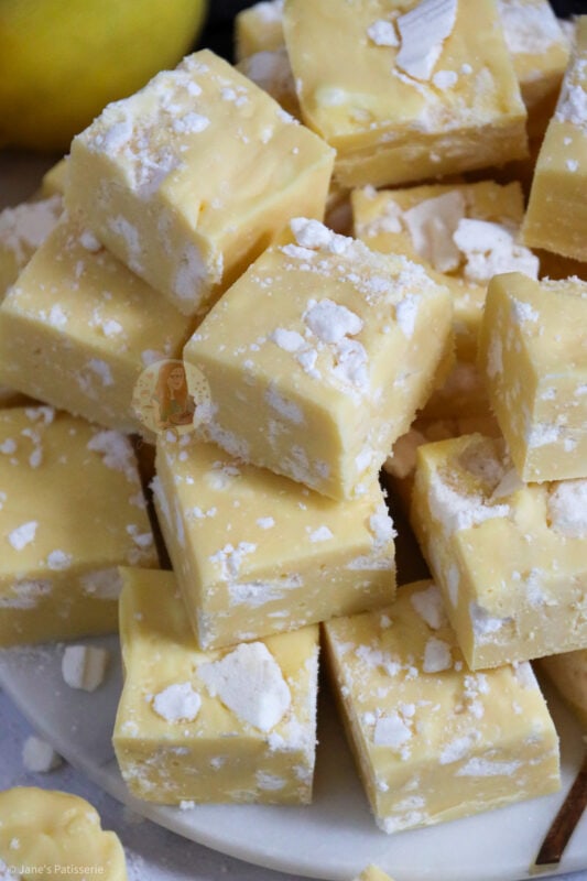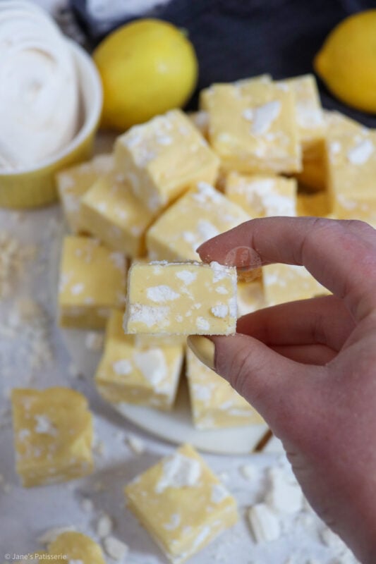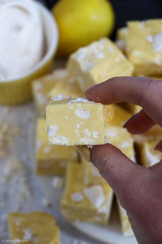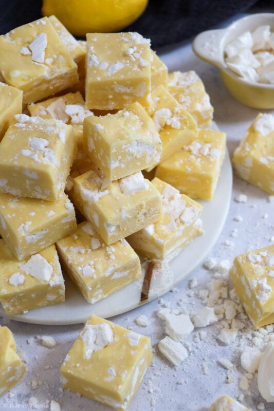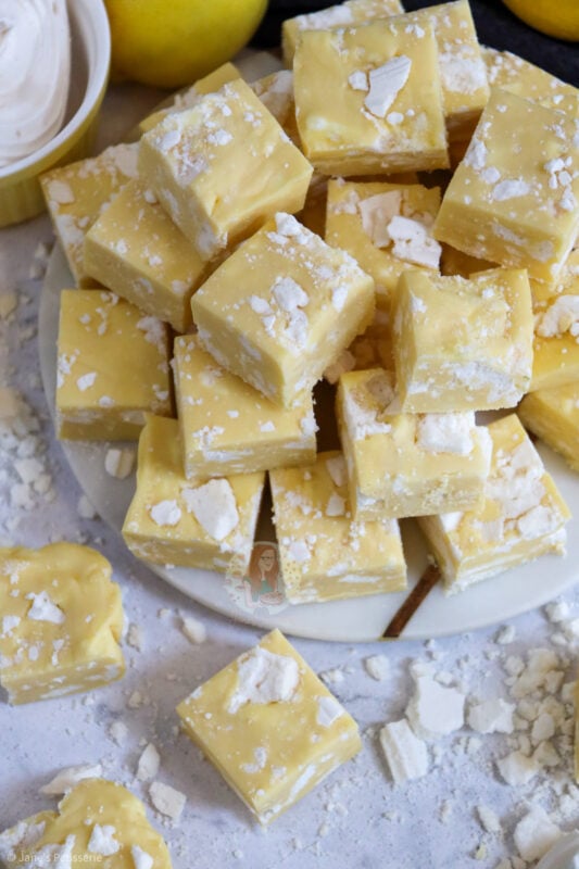 Easy condensed milk lemon fudge with crunchy & sweet meringue pieces, the BEST lemon meringue fudge!