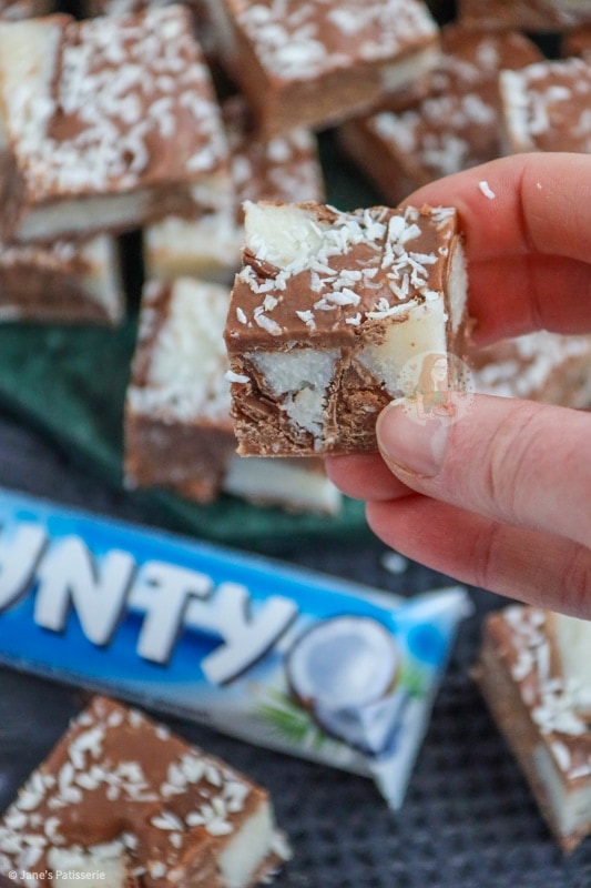 If you wanted to make a more classic fudge, you can follow my Easter fudge recipe and substitute all of the easter chocolate for bounty, and swap the white chocolate to milk chocolate in that instead! Also, if you just want a plain chocolate fudge, use an 8″ square tin, and simply leave out the coconut and bounty.