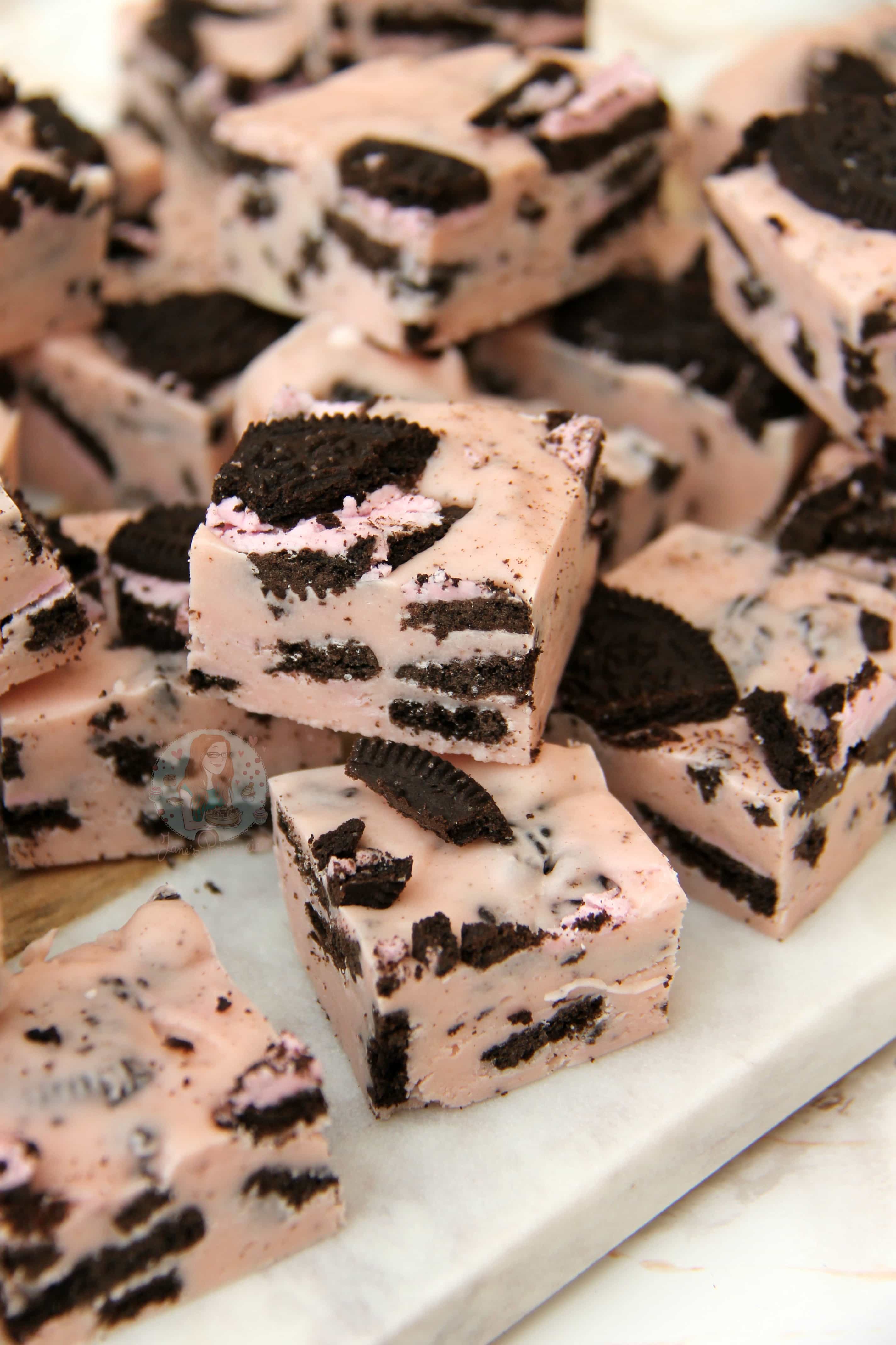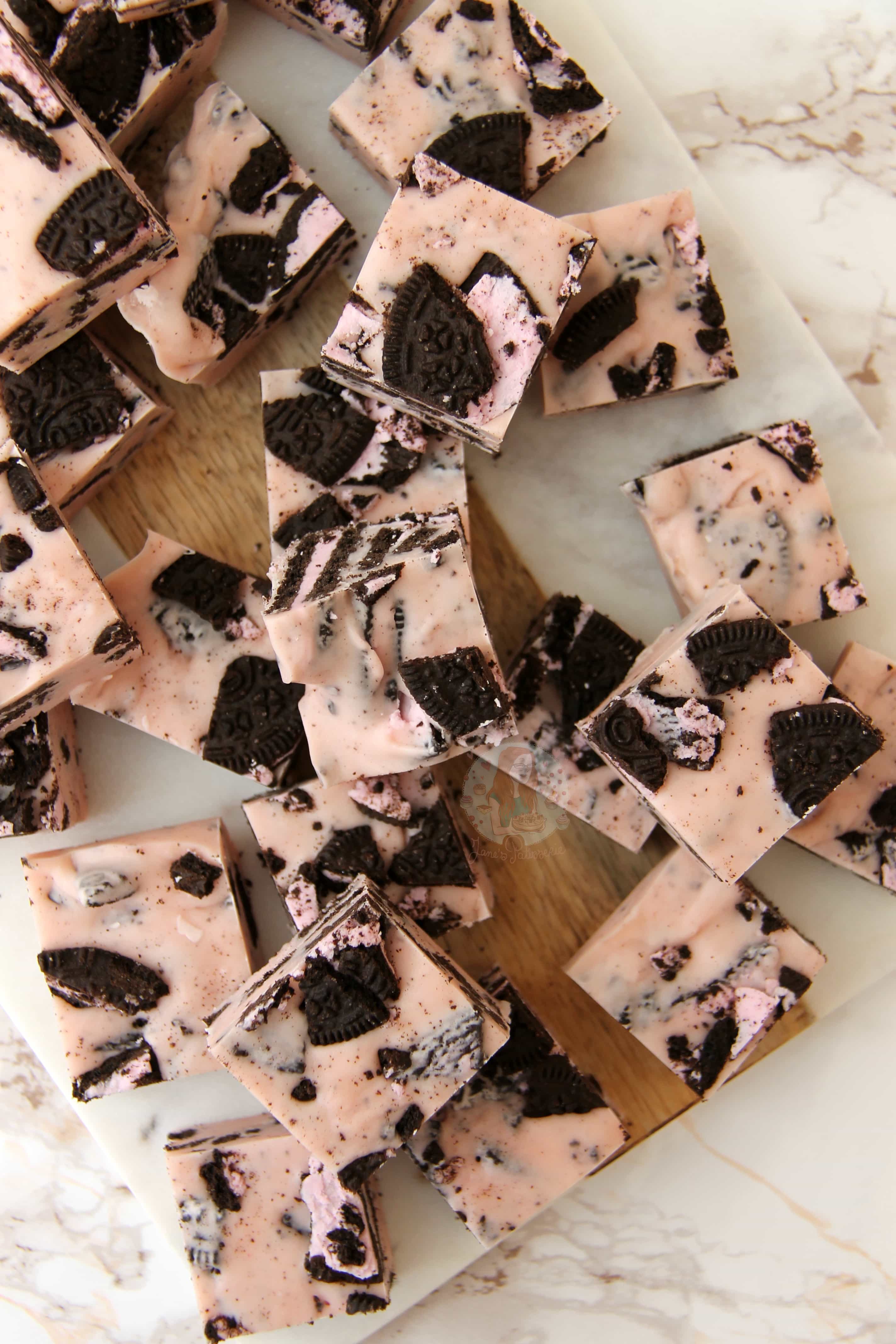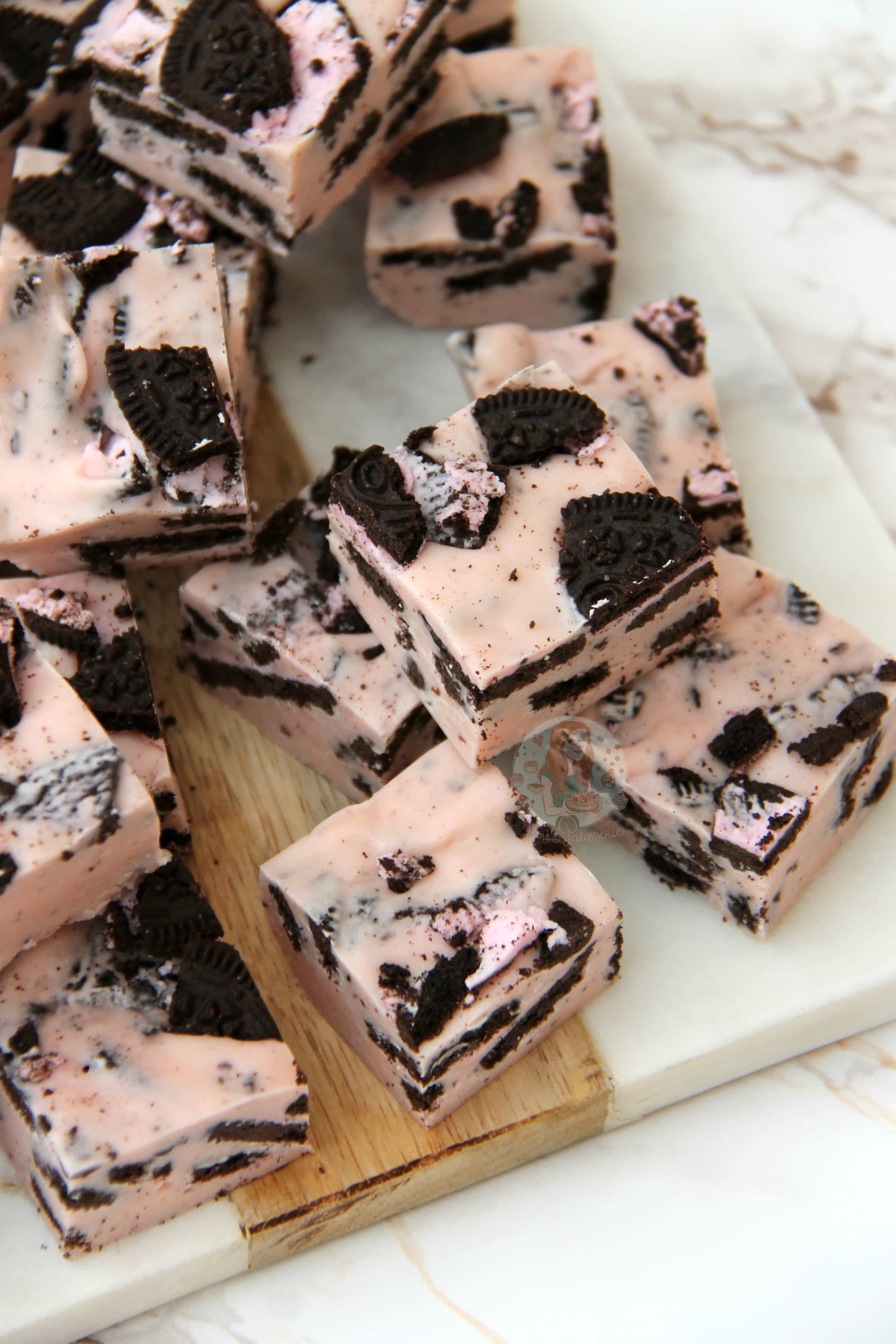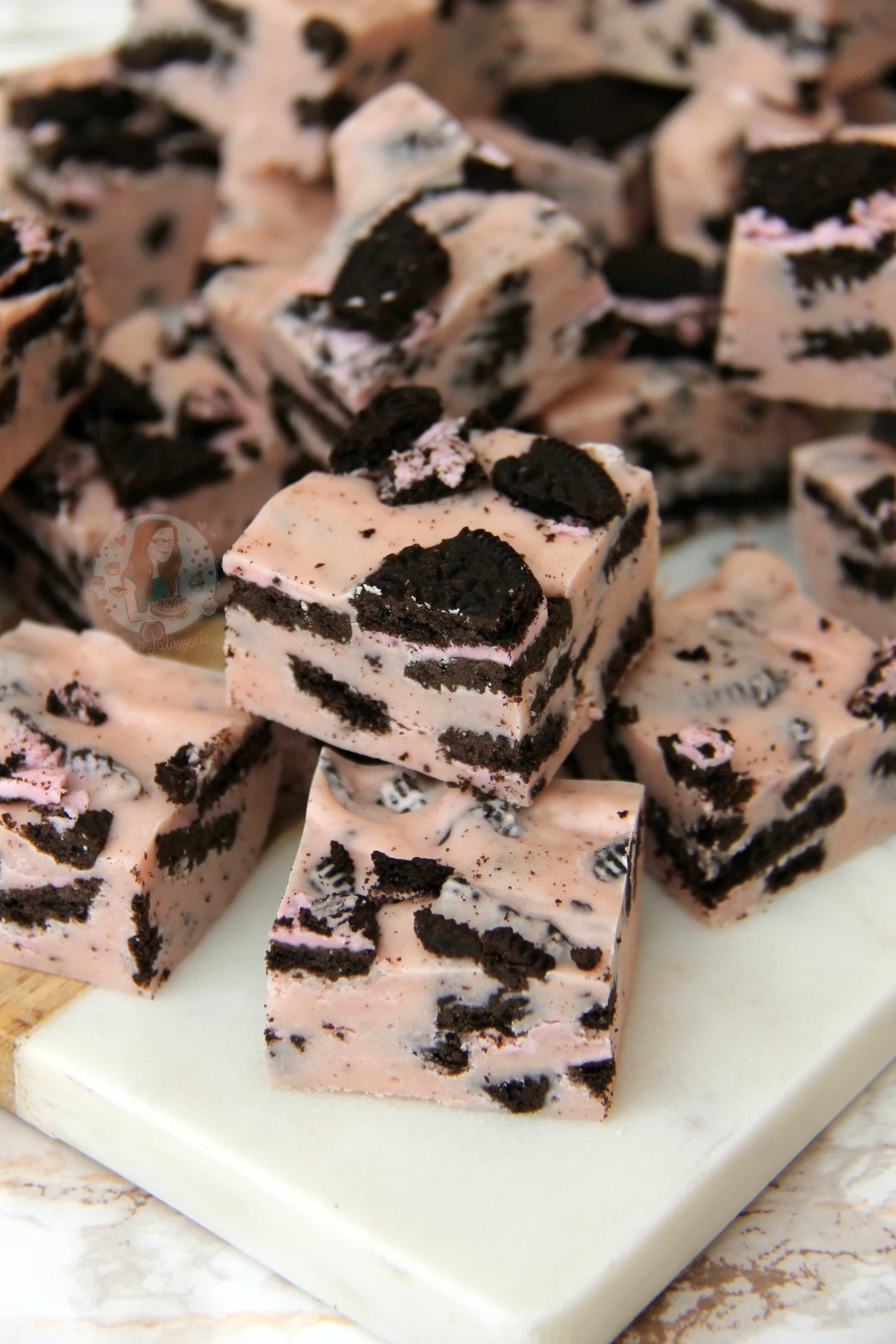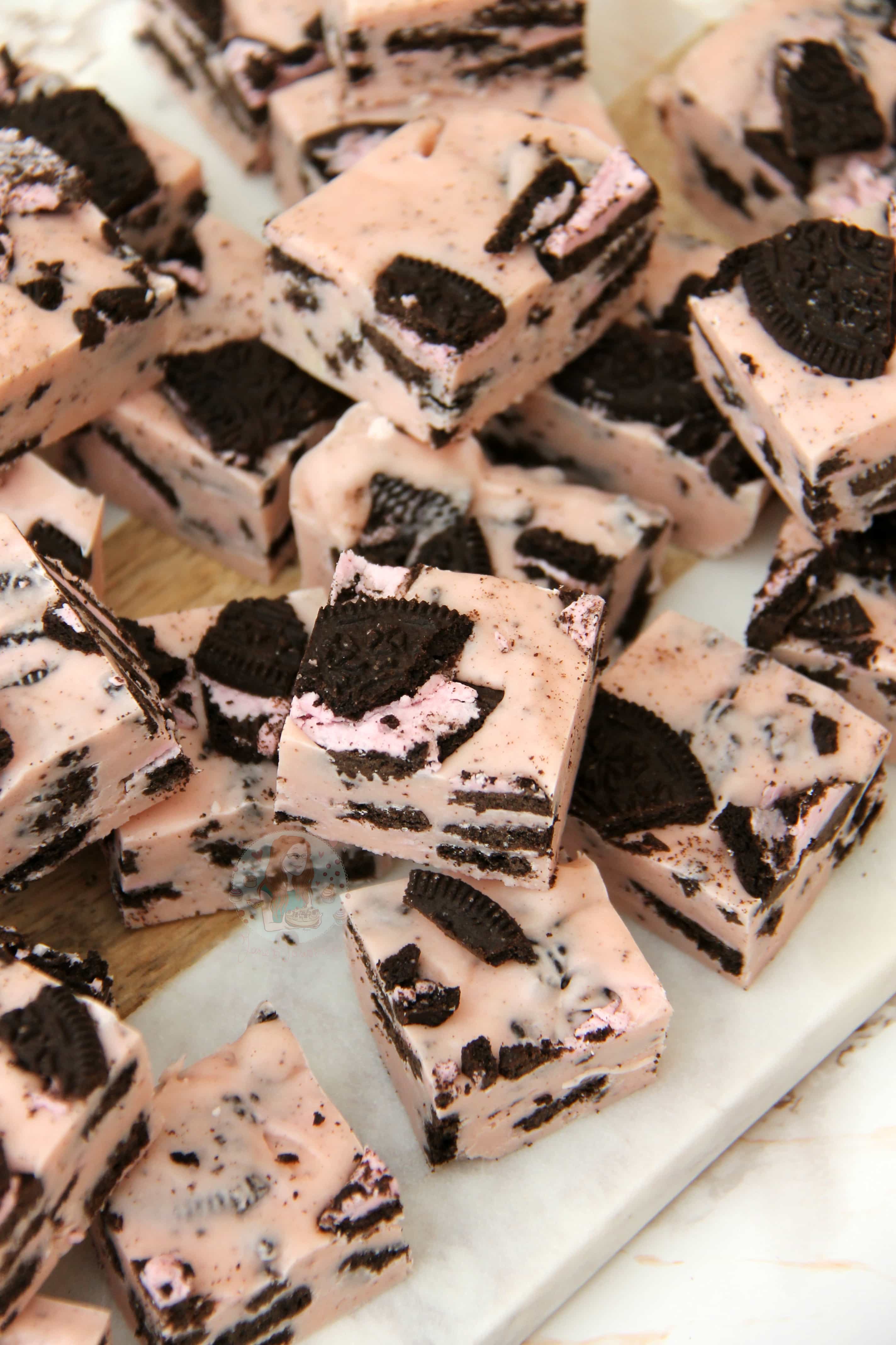 Easy, Sweet, and Super Strawberry Oreo Fudge. No Boiling, No Sugar Thermometers, just quick and No-Bake!