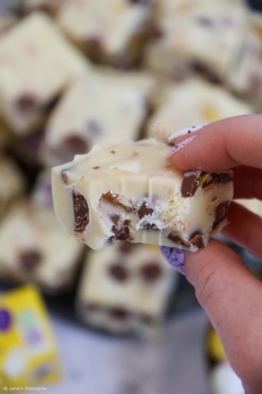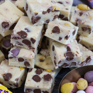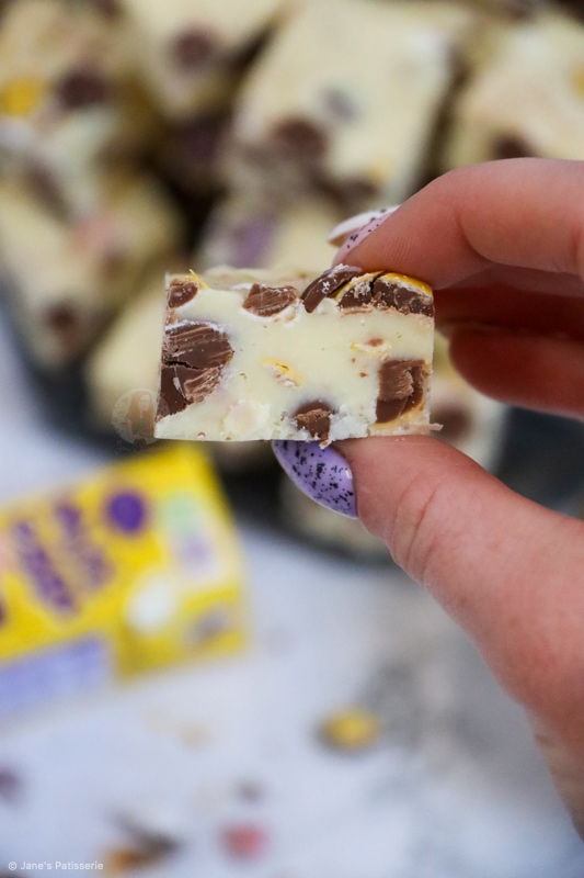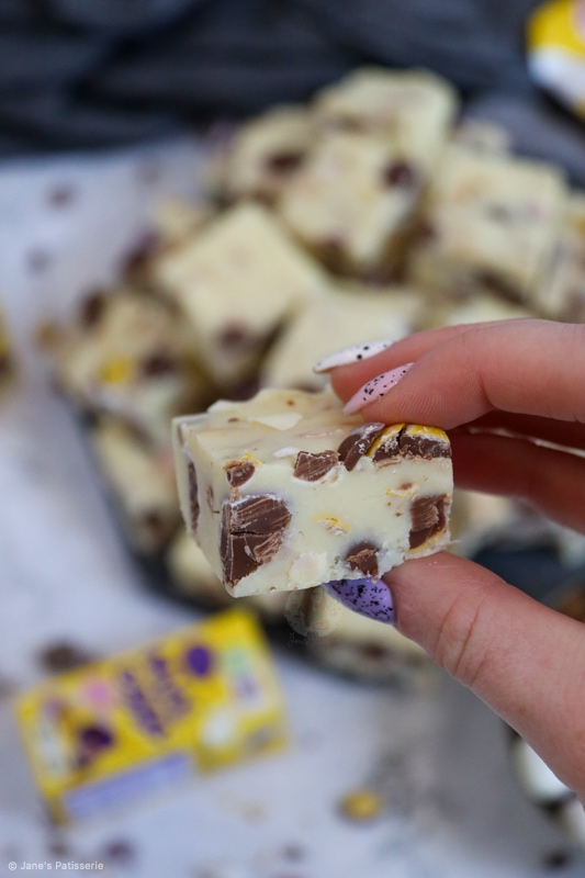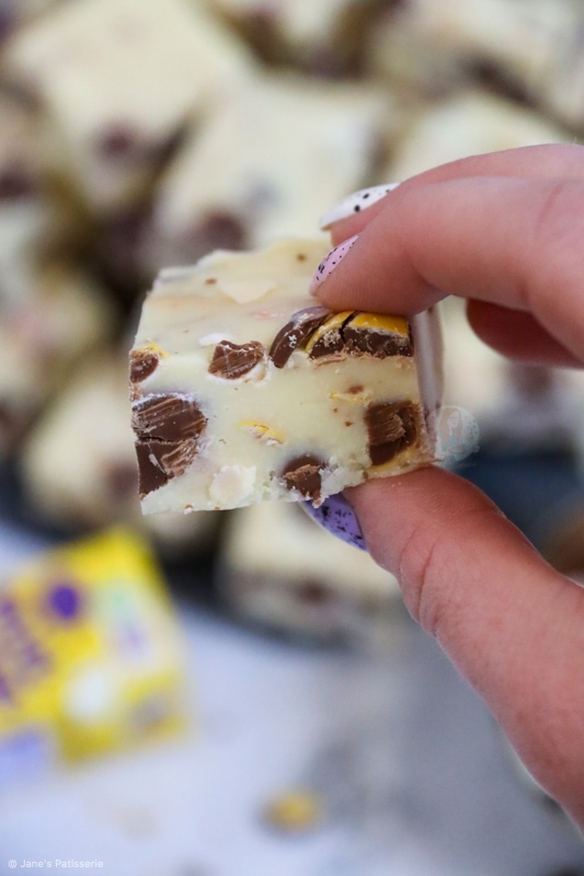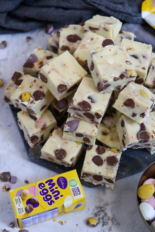 The recipe itself is based on my other ‘cheats fudge’ recipes such as my biscoff fudge, my cookie dough fudge, my mint aero fudge and I just can’t get enough of them. To the haters out there, you can use my vanilla fudge recipe and add mini eggs to that instead.