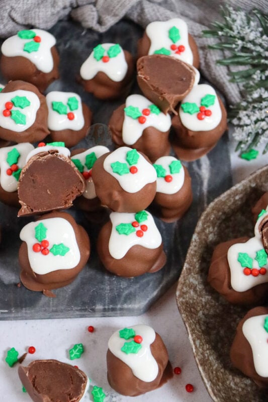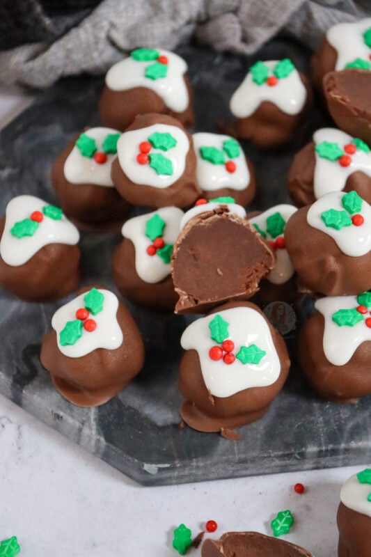 Deliciously chocolatey truffles made into mini Christmas puddings! Cute little gifts for the festive season!