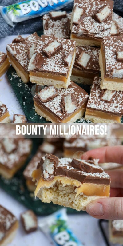 Coconut shortbread, homemade caramel, chocolate, coconut and bounty make the best bounty millionaires ever!