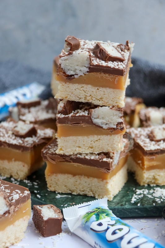 I find it best to set my bounty millionaires in the fridge so it’s quicker, but also it firms the caramel up perfectly. If you find your caramel is too soft even after setting in the fridge, this does mean it was under boiled and there is nothing you can do now other than enjoy a slightly softer caramel.