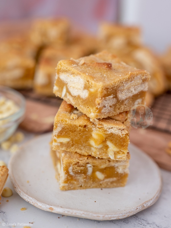 I have a thing for blondies as they are such an easy traybake to make, but also just so good! They are fudgey, sweet, and incredibly moreish. With a custard twist, they are even better! Honestly, I know you will enjoy them.