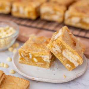 I have had so many requests for a custard cream blondies recipe that I can’t actually cope! My biscoff blondies and my bakewell blondies have always been so popular, but I have a feeling these are going to be on another level.