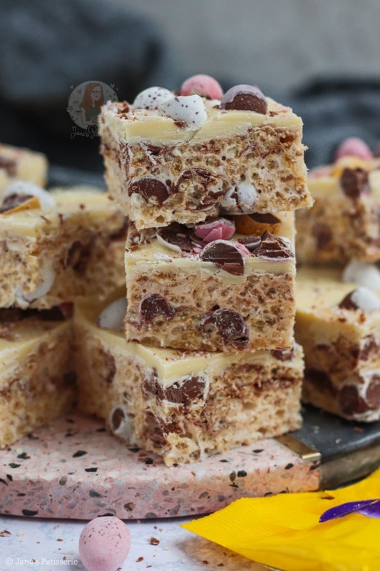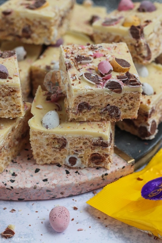 • You can switch to a different easter chocolate, or even something not easter themed! And you can switch up the white chocolate topping to any chocolate! I’ve done different flavours such as chocolate orange, Biscoff and so on – you can do what you prefer, and have fun with it.