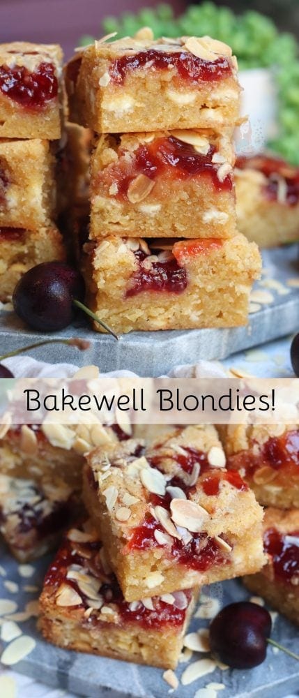 Absolutely gorgeous I love anything that has ground almonds in these Bakewell Blondies recipe are absolutely gorgeous little morsels of delighted I could quite happily devour far too many of them I have to freeze some to be able to resist they’re fabulous all of my family adore them many thanks for sharing your scrumptious recipes they all turn out perfectly!