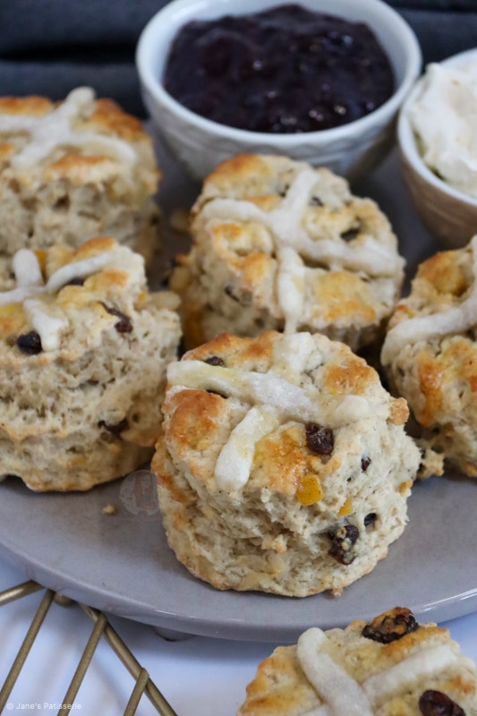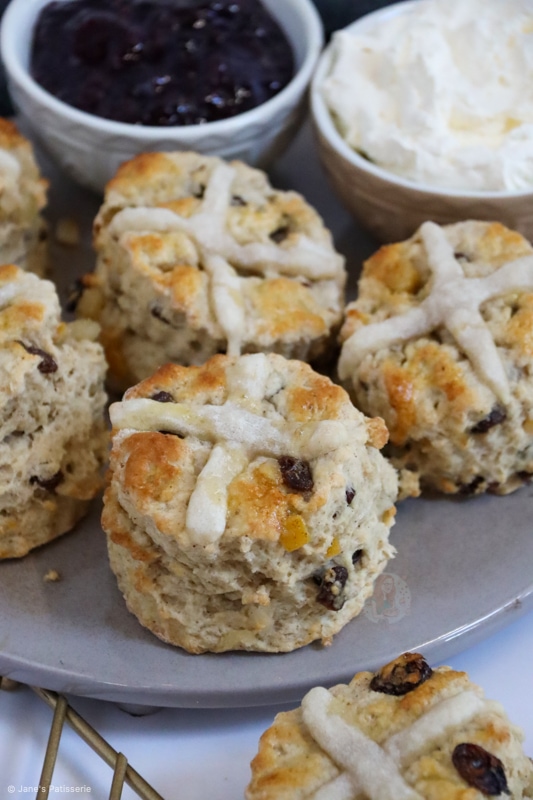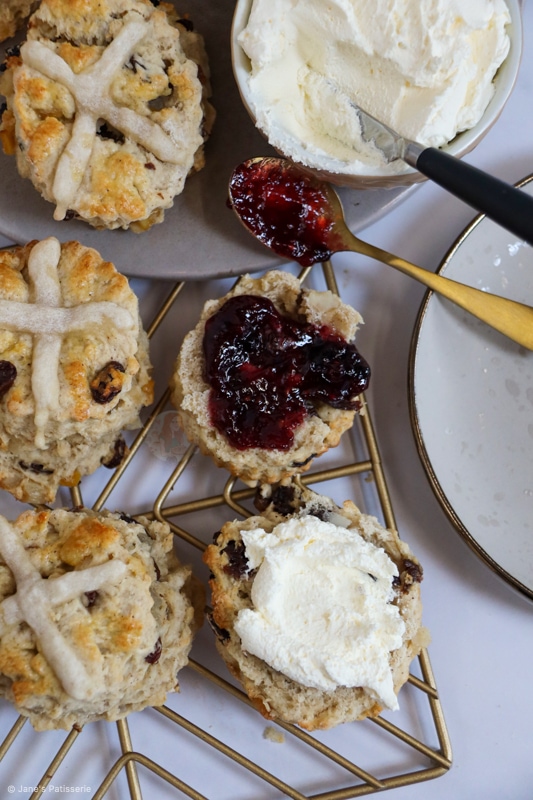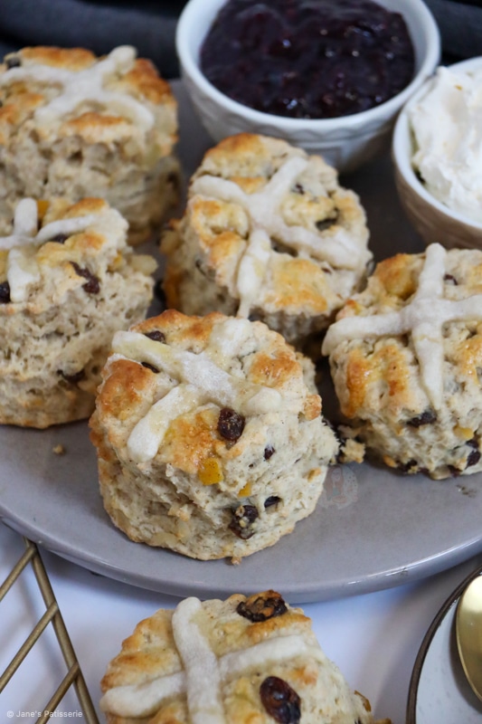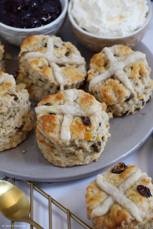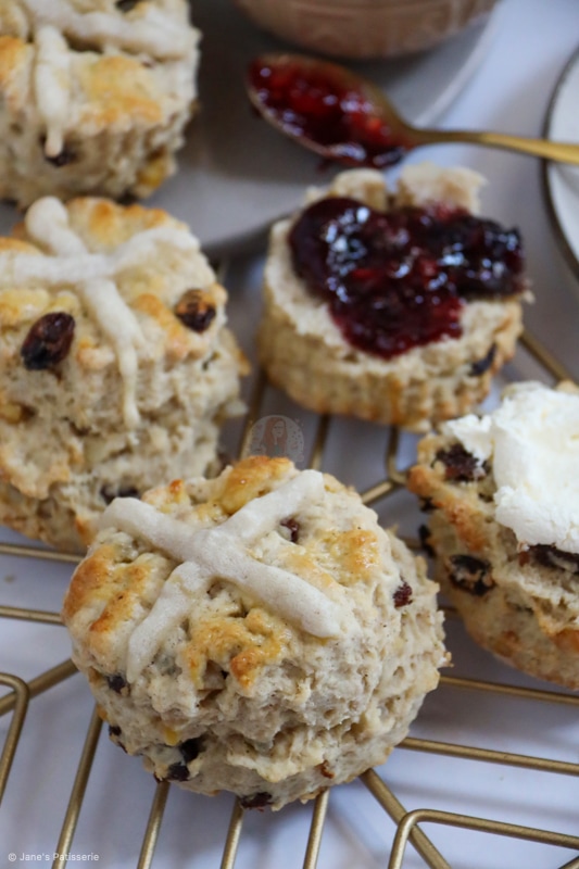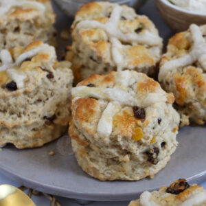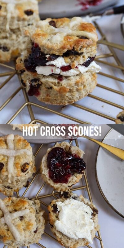 Delicious hot cross scones, a twist on a classic buttery scone, mixed with hot cross buns – what more could you want?
