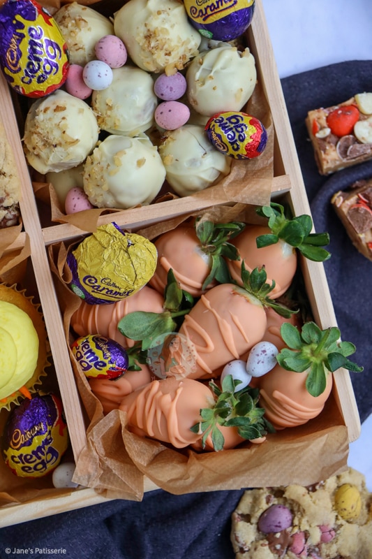 When I was thinking about this delicious easter treat box I wanted to include all of my favourites but my main issue is that I have SO many easter bakes that I love – so I thought I’d use a variety, and quite a few of my newer recipes to jazz it up a little. Of course, a certain classic got in there though.