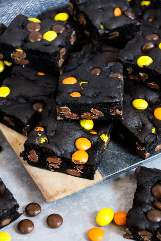 I thought, why not make the actual cookie black? Like to really contrast with the orange and yellow. I realise some people can get a bit funny about using food colouring, but when you use really good quality food colouring, it doesn’t matter even nearly as much because you use so little. I 100% recommend the Sugarflair Extra Black, as I just used half a teaspoon, and it made the bake completely black.