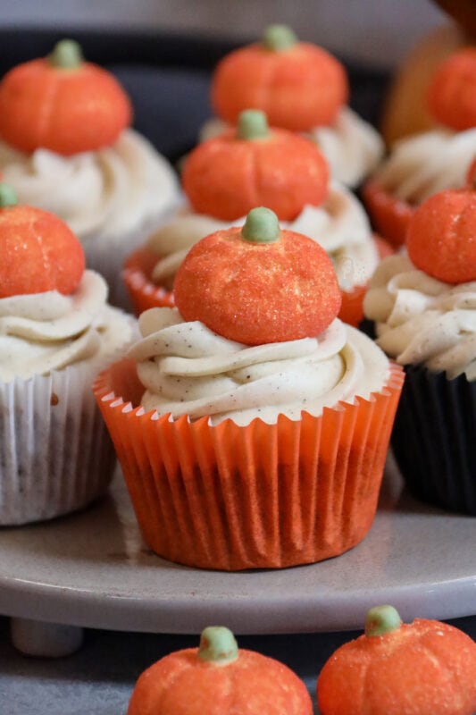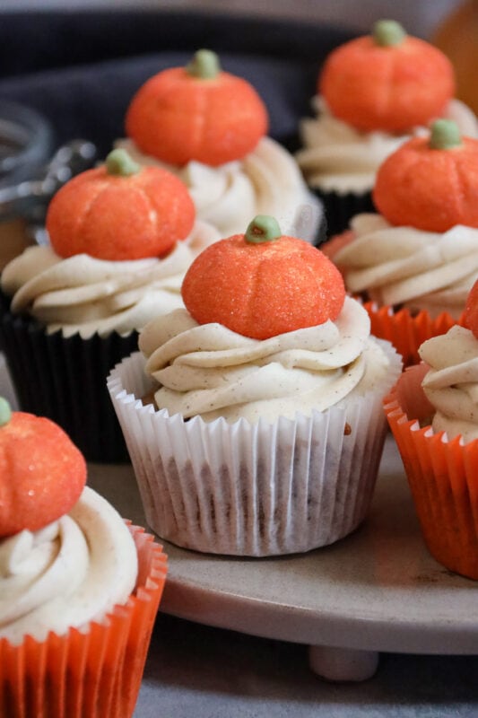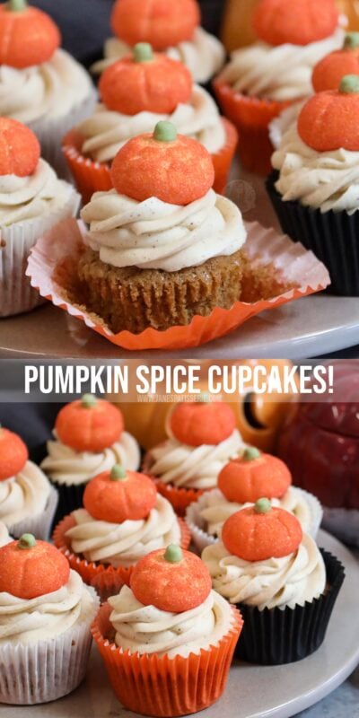 A delicious cupcake twist on the classic and popular pumpkin spice latte.. pumpkin spice cupcakes with pumpkin spice buttercream frosting!