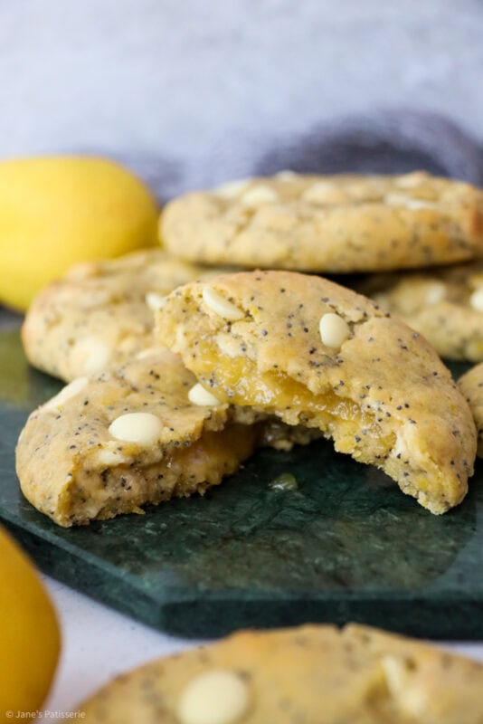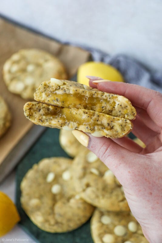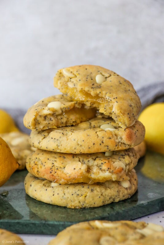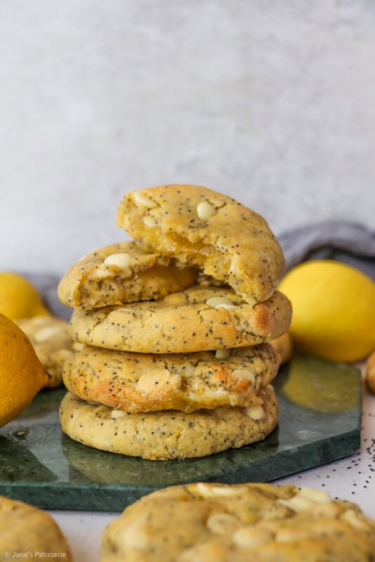 Deliciously easy lemon poppyseed cookies with white chocolate chips, stuffed with a lemon curd centre