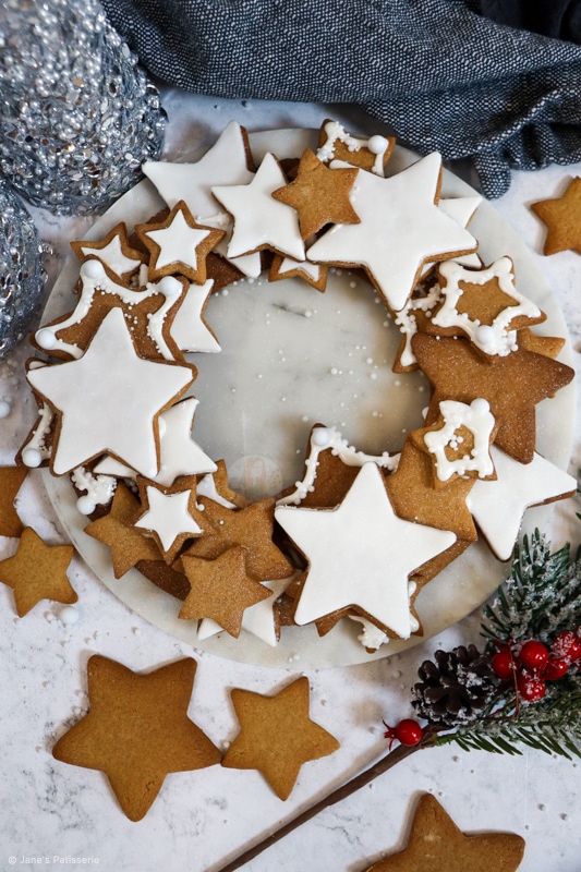 A deliciously easy gingerbread cookie wreath with homemade gingerbread biscuits, royal icing and more to create a beautiful showstopper!
