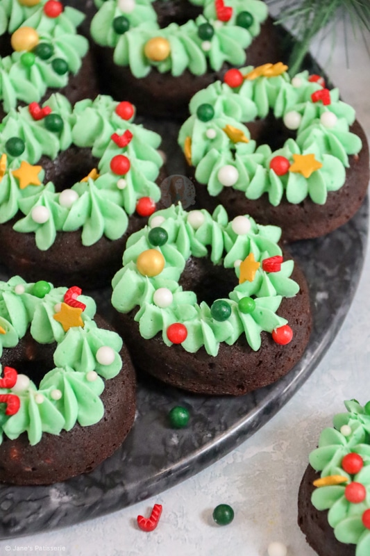 I went for buttercream for the decoration, as it seemed the easiest. I have similar designs of green on other festive bakes such as my giant Christmas Cookie, or even my christmas tree cupcakes – but I adore it.