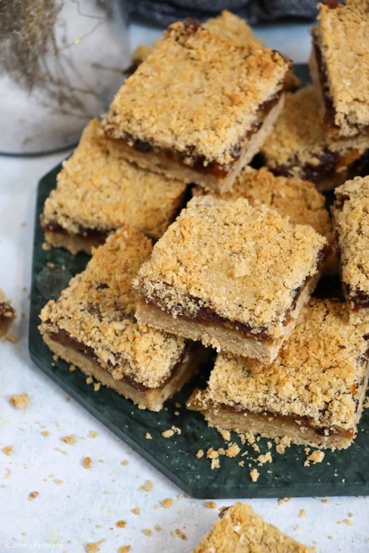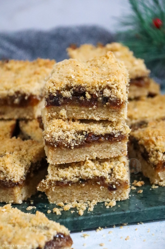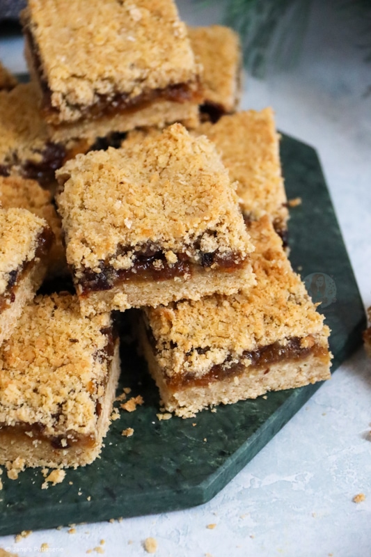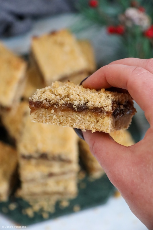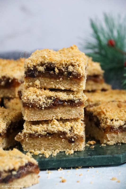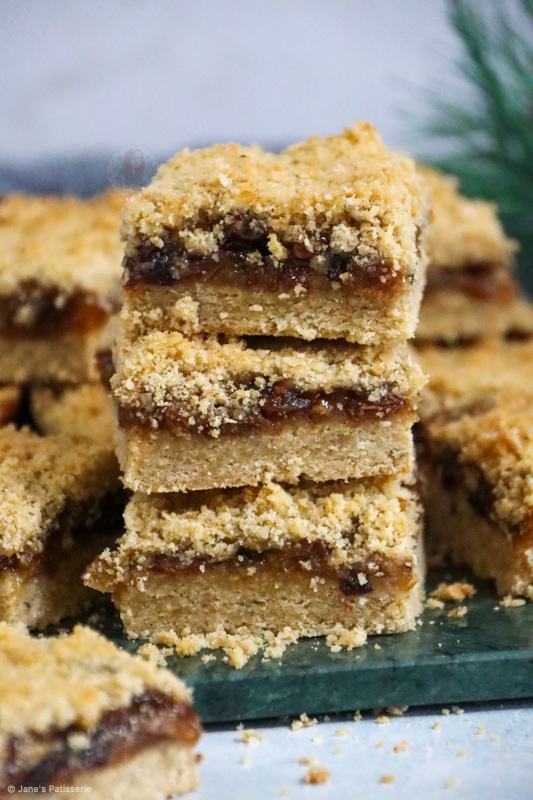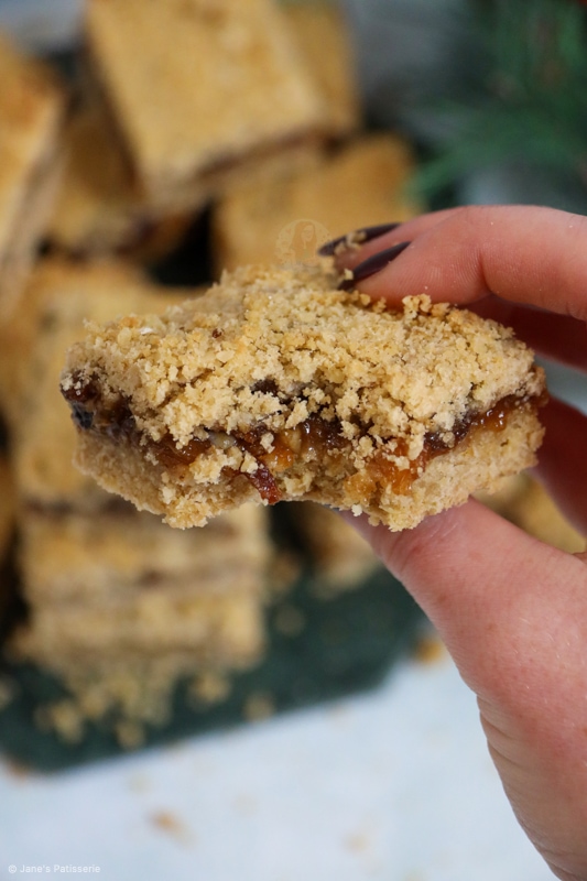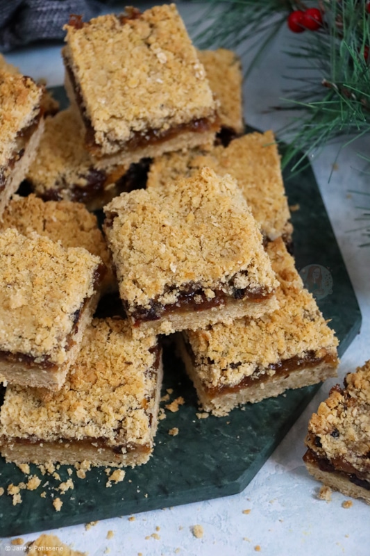 So when it comes to the mincemeat part of a mince pie or these crumble bars, no there is no actual meat involved. I know so many of you will know that, but some people really don’t.