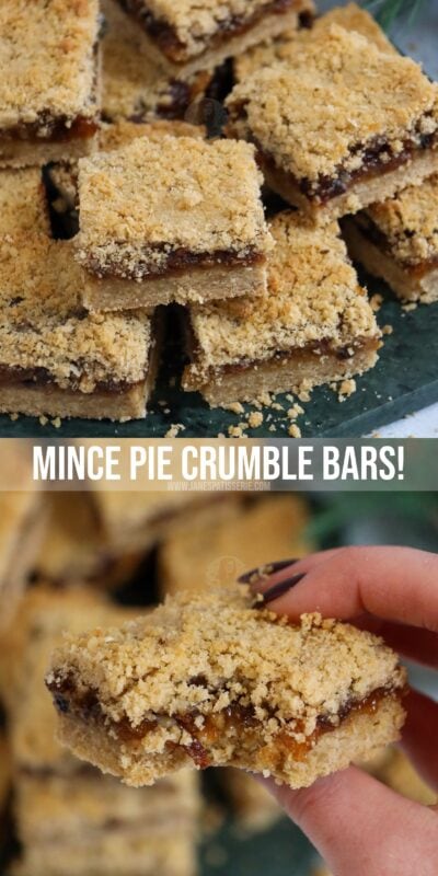 Delightfully delicious mince pie crumble bars with an oat crumble base and topping, and homemade mincemeat filling!