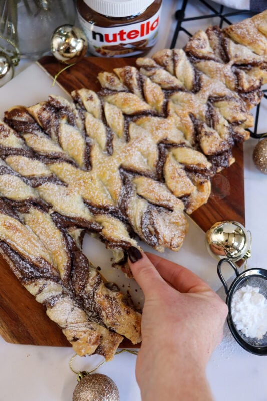 The puff pastry creates a wonderful texture to the Nutella Christmas tree, which you wouldn’t get from other types of pastry. I think shortcrust would be too crumbly and dry, compared to the light buttery texture of puff.