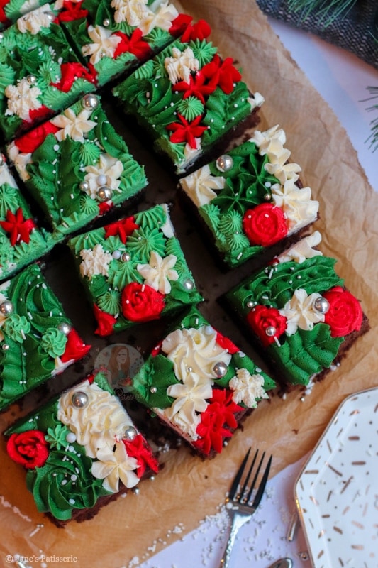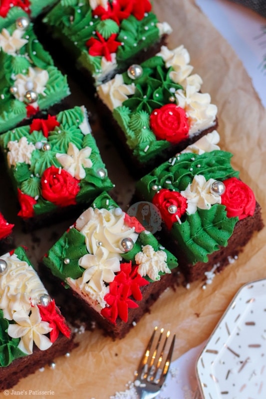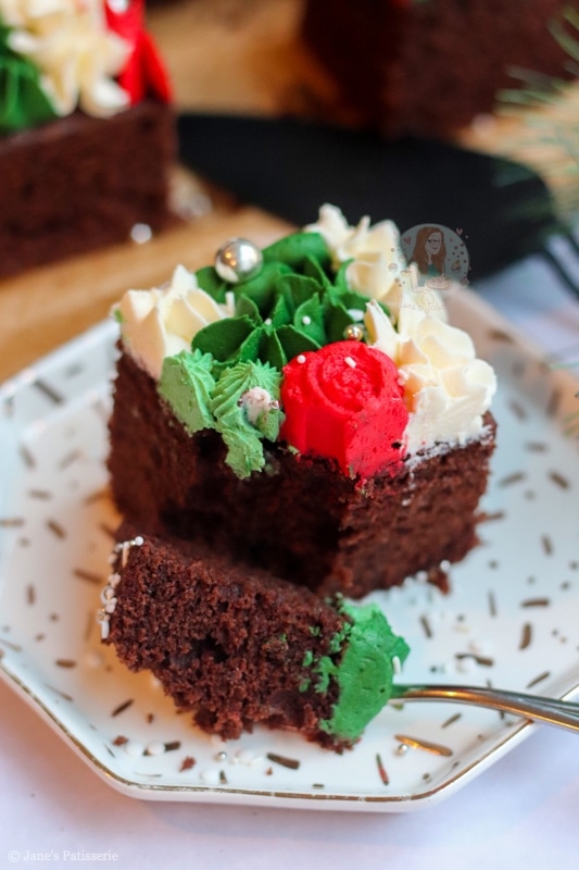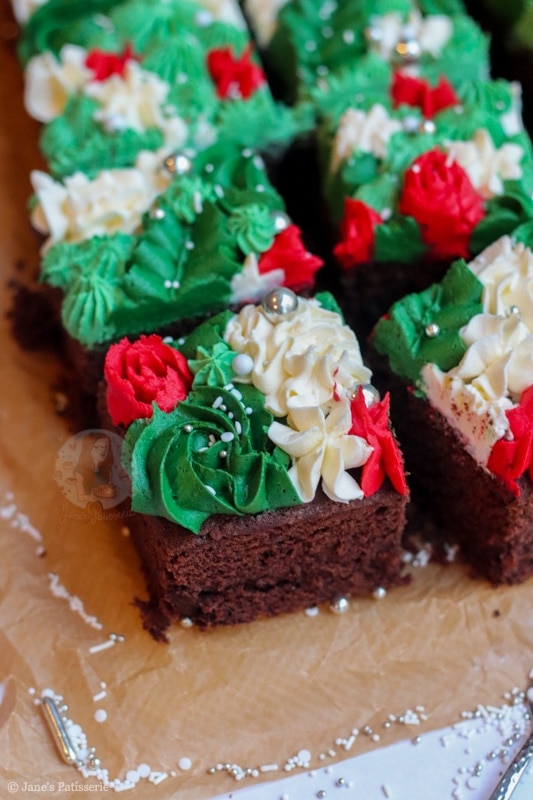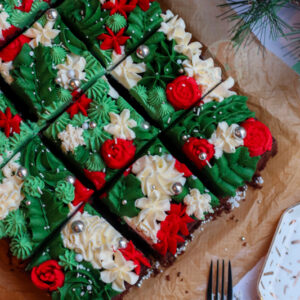I love traybake cakes if you haven’t noticed already – my chocolate fudge traybake is one of my all time favourite cakes to make as it is just so utterly delicious. And as a complete contrast, my gin & tonic traybake is just as delicious – and so simple to make! This Christmas traybake cake is a mix of all my traybake cakes together.