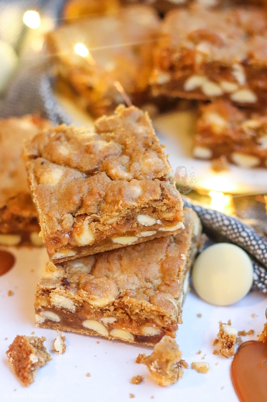 This is obviously the part where you bake the caramel gingerbread cookie bars – and it is worth the wait. Oh my daaaaays these caramel gingerbread cookie bars are INSANE. It honestly is best to let these cool fully in the tin, because when you portion them up you will see the sticky delicious caramel in the middle! Let me know if you try these beauties out in the comments – or tag me in a photo on social media!! I hope you love them! Jane x