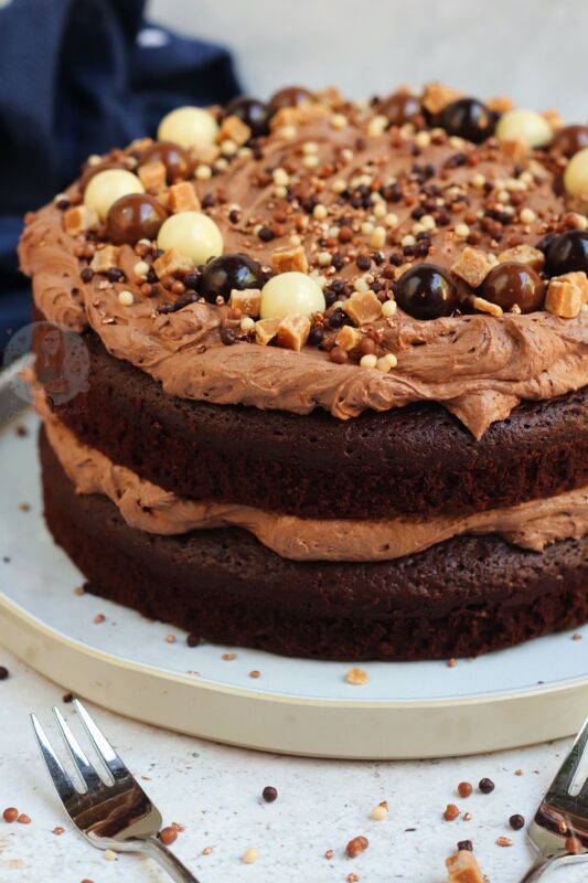 When I posted my recipe for my Victoria sponge – celebration cake I knew you all loved the classics, so I hope this suits well too! However, this cake is so much more indulgent. You can easily make a chocolate version of my Victoria sponge, but this is definitely more dense, and more chocolatey. It’s basically heaven in a bite.