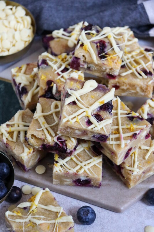 Lemon and blueberry together is a wonderful combination – as good as strawberries and chocolate, apple and cinnamon and even caramel and ginger! If you love the taste of lemon and blueberry together like these lemon & blueberry blondies.. you might love my lemon & blueberry cake, and my lemon & blueberry cheesecake!