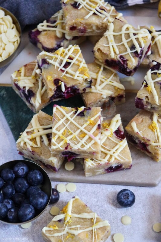 Deliciously sweet, light, lemon & blueberry blondies with white chocolate chunks!