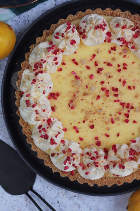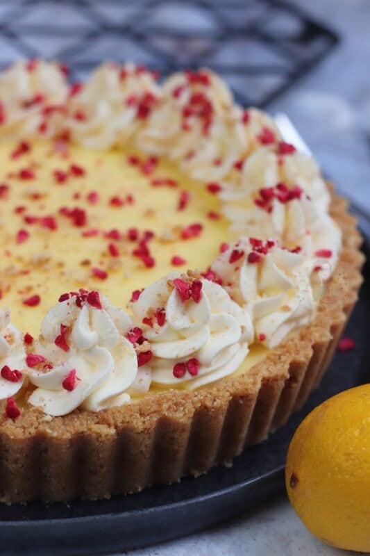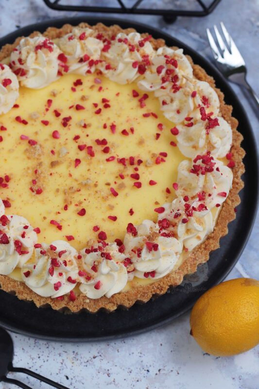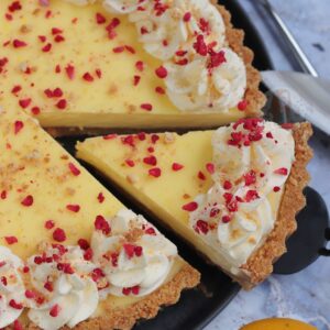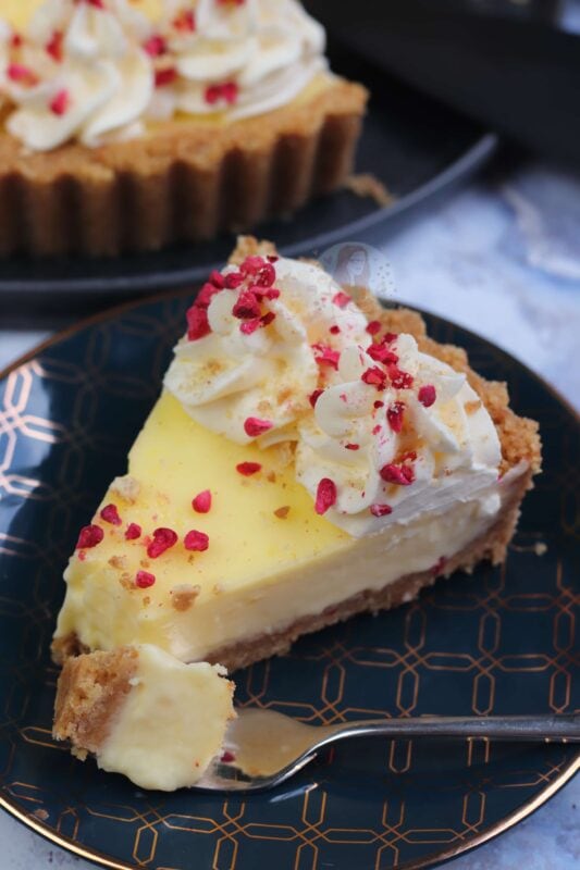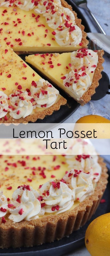 Deliciously creamy lemon posset on top of a buttery biscuit base – a yummy no-bake dessert based on a classic… the lemon posset tart!
