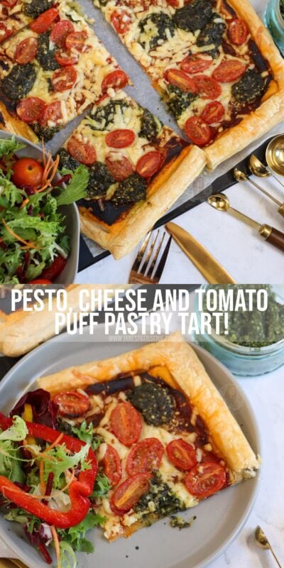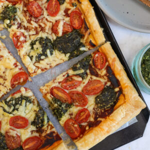 Pesto, Cheese & Tomato Puff Pastry Tart!
