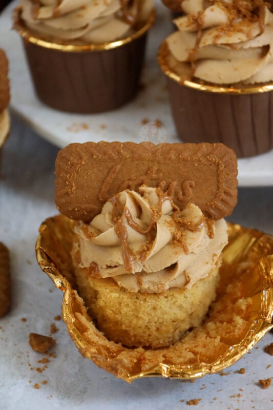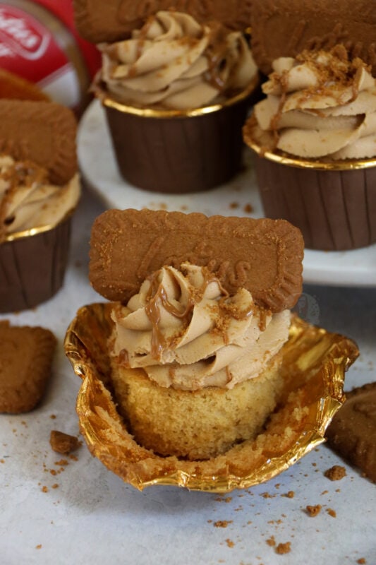 Amazing and delicious Biscoff cupcakes with a brown sugar sponge, Biscoff buttercream, Biscoff biscuits and more!